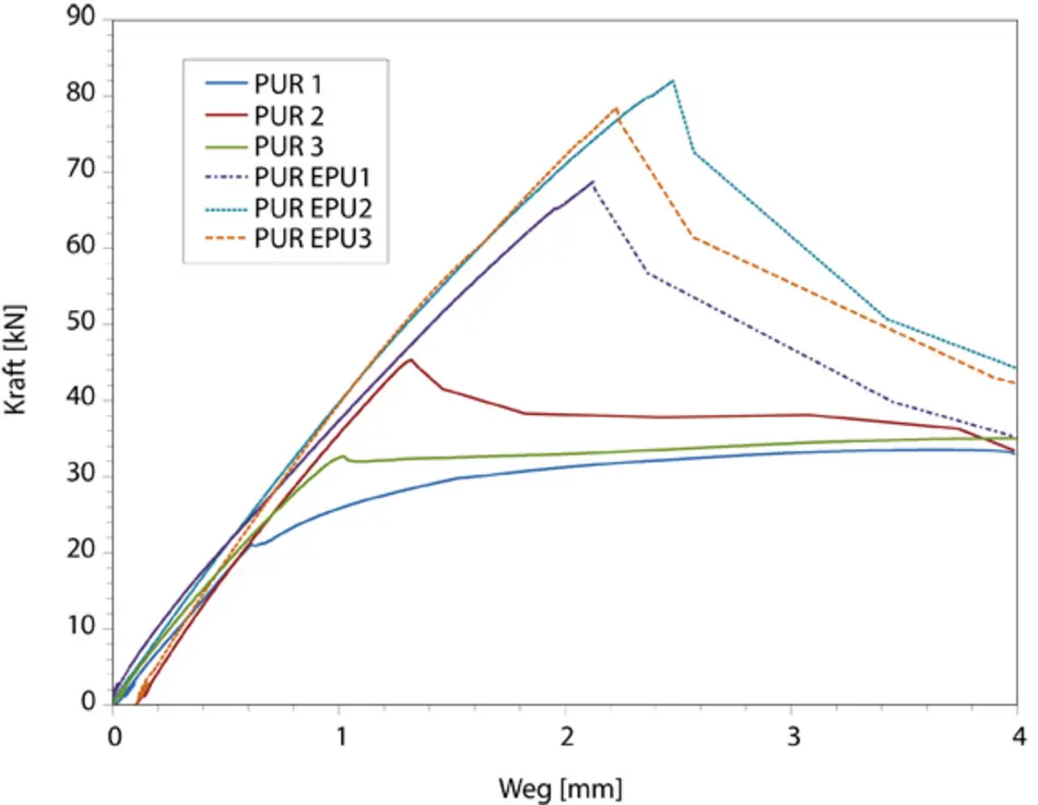Sowohl Tragfähigkeit als auch die Steifigkeit (kser) von eingeklebten Verbindern (Stahlstäbe, Stahlbleche) werden mit Hilfe der Vergusstechnologie um bis zu 80% gegenüber den unvergossenen Stahlverbindern (Inlays) gesteigert. Die Duktilität des Stahlverbinders, sowie ein plastisches Entfestigungsverhalten bleiben erhalten.