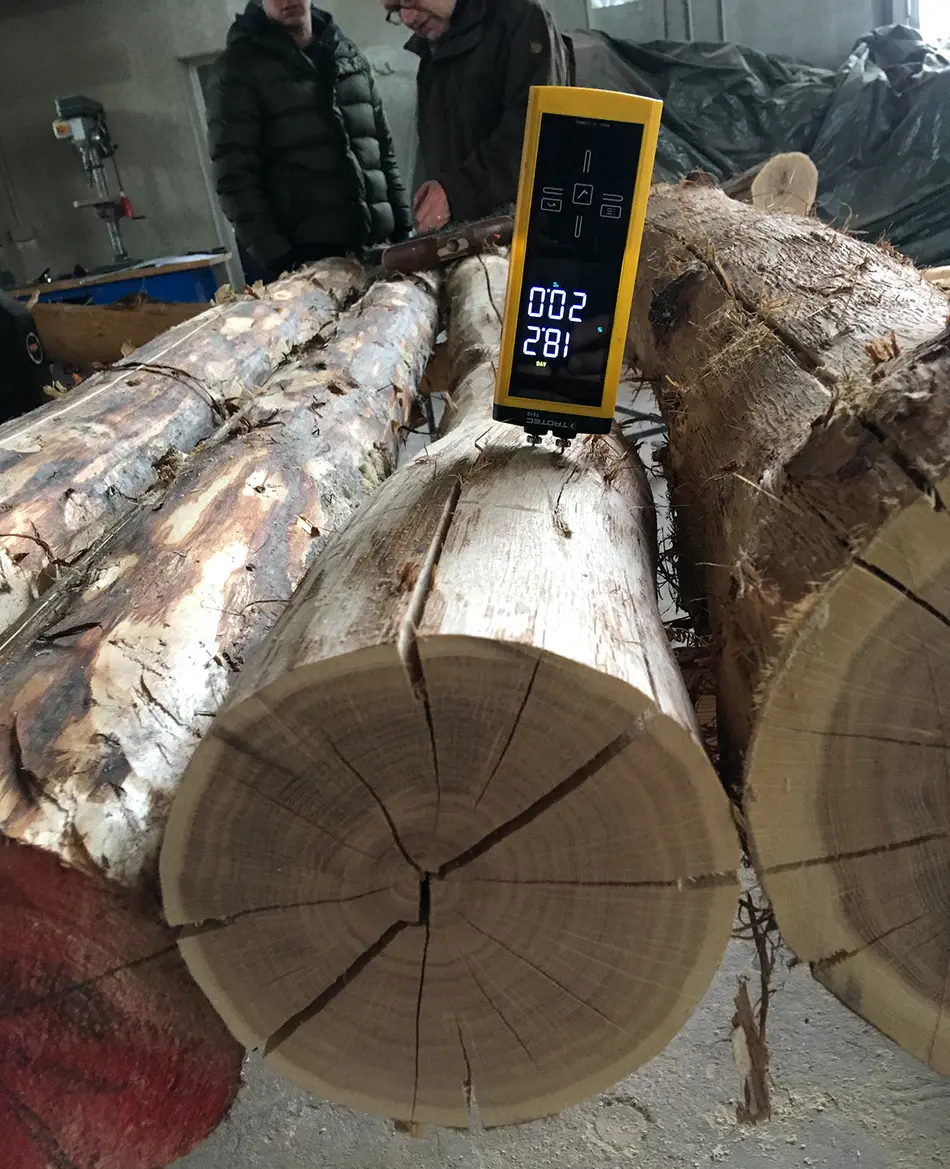 Zweite Reihe: Feuchtemessung / Beobachtung des Trockenverhaltens und der Rissbildung / Travi (Krümmung)