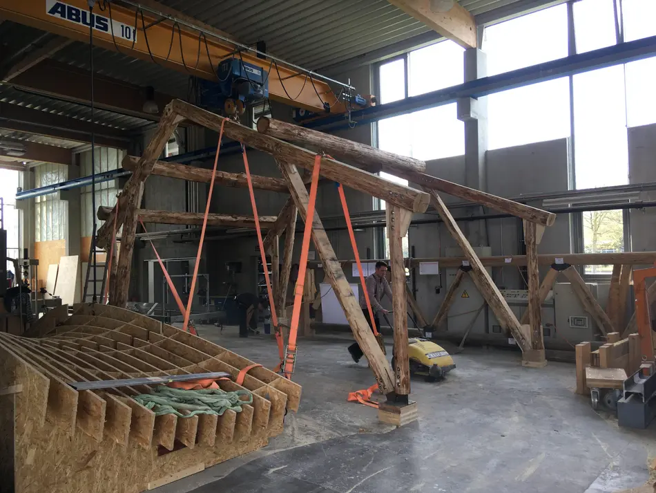 Dabei handelt es sich um ein Förderprojekt des Bundes zum Erhalt und Ausbau des CO2-Minderungspotenzials von Wald und Holz sowie der Anpassung der Wälder an den Klimawandel (Förderrichtlinie Waldklimafonds). Gegenstand des Vorhabens ist die Schaffung einer Verwendungsmöglichkeit von bislang ungenutztem, geringwertigem Laubschwachholz. Dazu werden neue Verfahren erprobt mit denen das Holz, trotz fehlender Standardmaße und Geometrien, für eine höherwertige Nutzung im Bausektor eingesetzt werden kann. Um das zu erreichen soll eine neue Prozesskette entwickelt und untersucht werden, bei der ausgehend vom vorrätigen Holz, die Konstruktion von Bauwerken flexibel an das jeweilige Holzangebot angepasst wird. Ein wesentlicher Aspekt ist dabei die Festigkeitsprüfung solcher Sortimente und daraus hervorgehend die Entwicklung eines Hallentragwerks aus Laubschwachholz.