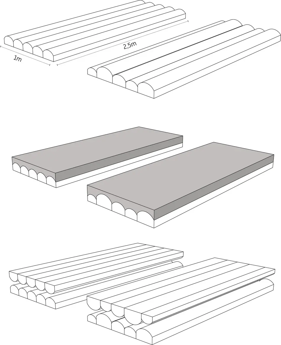 Für ein konkretes Bauprojekt suchte ein Aufraggeber nach Möglichkeiten, weitgespannte Deckenkonstruktionen mit geringer statischer Höhe in Holz-Beton-Verbundbauweise zu realisieren. Holz-Beton-Verbunddecken sind nach dem bisherigen Stand der Technik ab Spannweiten von 6,00 m problematisch, da sie ggf. die nach DIN EN 1995-1-1 Abs. 7.3 geforderten Durchbiegungskriterien, bzw. das Eigenfrequenzkriterium > 8 Hz nicht wirtschaftlich erfüllen. Die vom Auftraggeber neu entwickelten schlanken Deckenelemente sollen die Wirtschaftlichkeit von Holz-Beton-Verbundbecken auf bis zu 14,00 m Spannweite (Einfeldsystem) steigern.