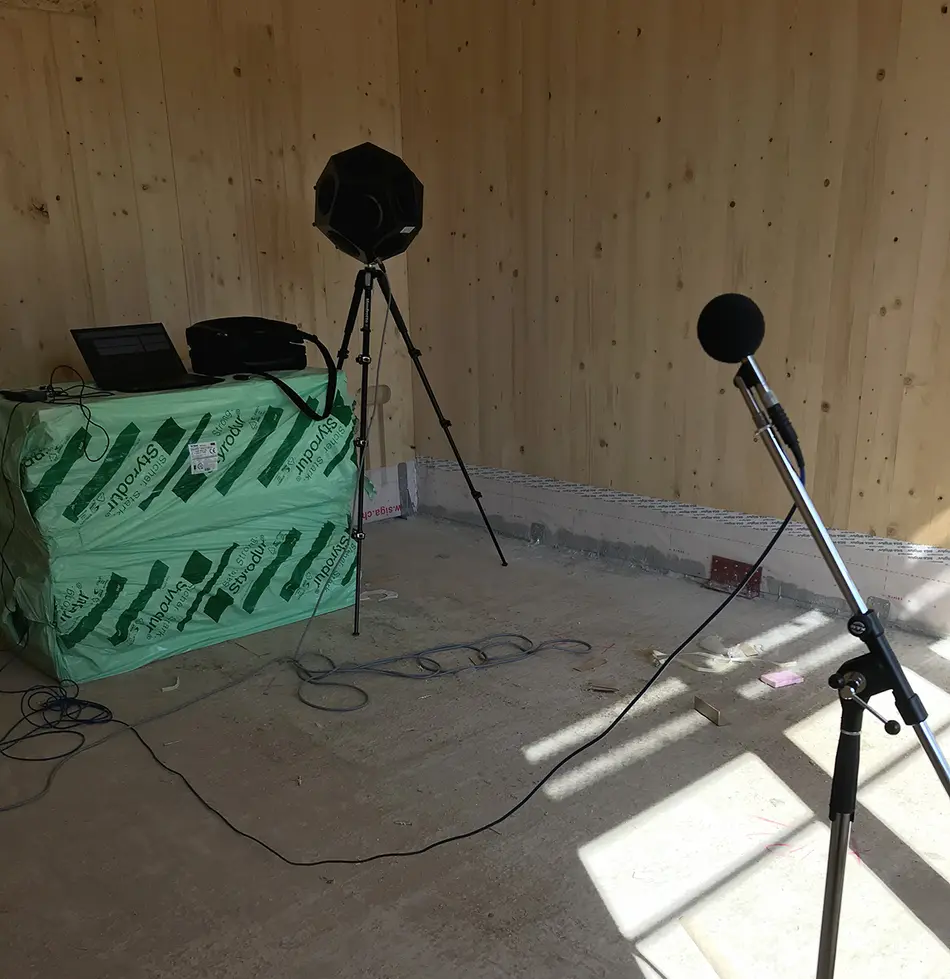 Die Fa. Steffen Holzbau errichtet in Remich derzeit 9 Reihenhäuser in Brettsperrholzbauweise. Im Projekt Schalluntersuchungen für die Firma Steffen Holzbau/LUX zur Feststellung des Dämmeffektes der Schalldämmstreifen unter den Brettsperrholzwänden dauern an. Mit Fortschreiten des Baus folgen die Schalluntersuchungen schrittweise. Damit wird ein im Holzbau stets problematischer Aspekt des hohen Schallschutzes untersucht und gemeinsam mit der Fa. Steffen Holzbau nach Verbesserungslösungen gesucht. Der Abschluss der Untersuchungen wird mit Fertigstellung der Reihenhausanlage erfolgen.
