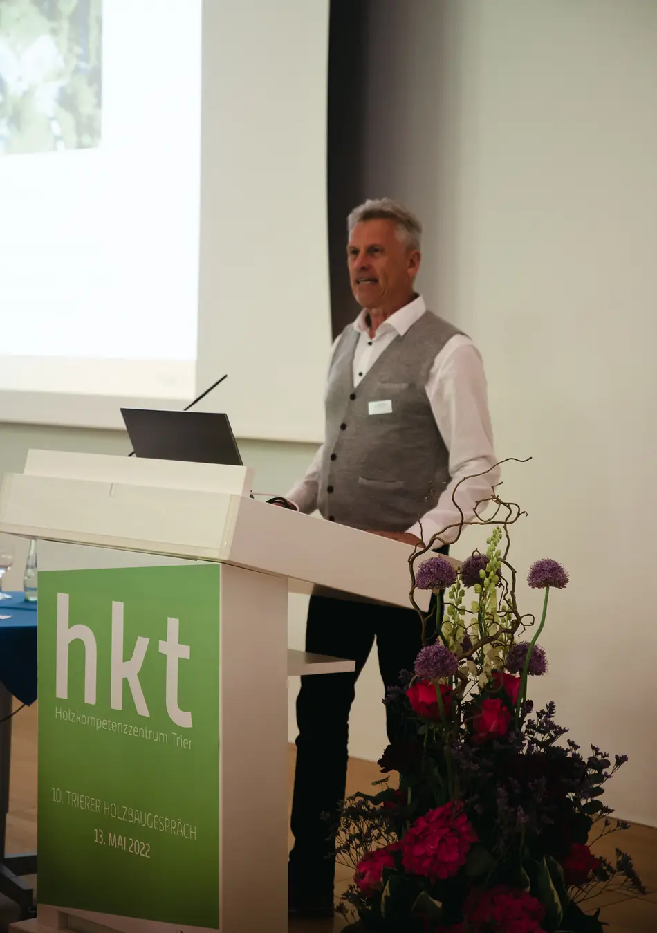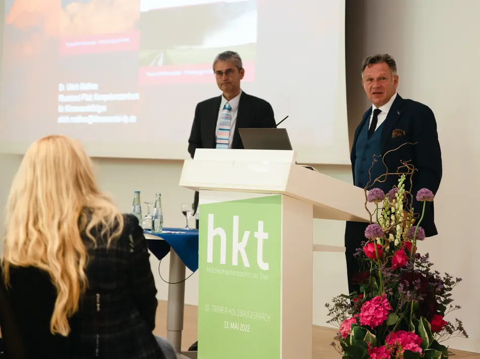 Das Lehr- und Forschungsgebiet Holz der Hochschule Trier organisierte am Freitag, den 13.05.2022 das 10. Trierer Holzbaugespräch im ERA Conference Centre Trier. Bei der "Jubiläumsveranstaltung" wurden die neuesten Entwicklungen des Ingenieurholzbaus sowie die Aktivitäten des Forschungsgebietes Holz präsentiert.