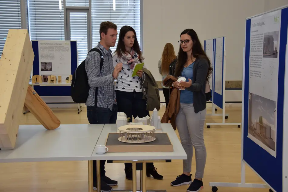 Das Lehr- und Forschungsgebiet Holz der Hochschule Trier hat am Freitag, den 27.04.2018 zum 8. Trierer Holzbaugespräch eingeladen. Hierbei wurden neueste Entwicklungen des Ingenieurholzbaus sowie die Aktivitäten Forschungsgebietes Holz präsentiert.