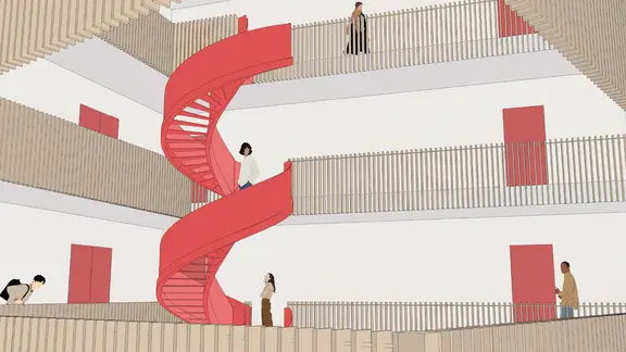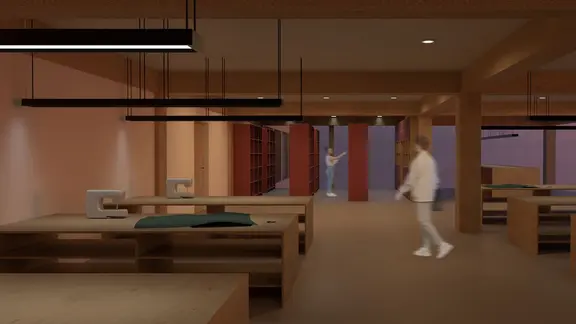 Die mitunter sehr unterschiedlichen Nutzungsarten prägen das Erscheinungsbild des Neubaus, innen und aussen. Es gilt eine Gebäudekubatur und -struktur (räumlich und konstruktiv) zu entwickeln, die den Anforderungen der geplanten Nutzungen Rechnung trägt und gleichzeitig robust, flexibel und leicht reversibel für zukünftige Nutzungsänderungen ausgelegt ist.
