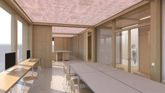 Eine zentrale Fragestellung wird in diesem Zusammenhang die konzeptionell motivierte Klärung des Verhältnisses von Struktur, Hülle, raumbildendem Ausbau und technischer Gebäudeausrüstung sein. Um diesem umfassenden Anspruch gerecht zu werden, wird die Aufgabenstellung als studiengangsübergreifende Kooperation herausgegeben und in interdisziplinären Teams mit den Studierenden der Architektur bearbeitet.