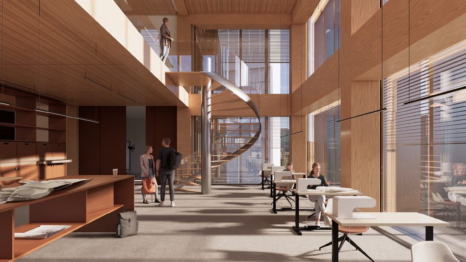 Eine Hybrid-Schule als Hochhaus in Holzbauweise