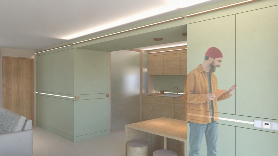 Ziel des Projekts ist die Entwicklung eines integral geplanten und modular aufgebauten Ausbausystems, das ein Beitrag zu einem nachhaltigeren Umgang mit Bestandsimmobilien sein will.