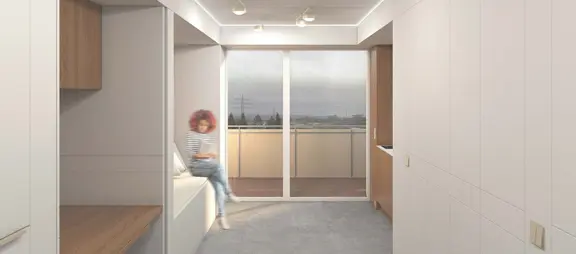 Grund genug, die eigenen vier Wände einer gründlichen Analyse zu unterziehen und daraus Ansatzpunkte und Strategien einer räumlichen, aber auch technisch-funktionalen Optimierung zu entwickeln. Die Erschaffung einer multifunktionalen, auch hinsichtlich der atmosphärischen Qualitäten wandlungsfähigen Lebensumgebung auf engstem Raum ist das Ziel. Als Basis bzw. Ausgangspunkt der innenarchitektonischen Überlegungen soll der aktuelle Planungsstand des MIAB-Systems verwendet werden.