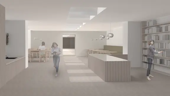 In diesem semester- und lehrveranstaltungsübergreifenden Projekt sind die Studierenden des 3. Semsters mit der Konzeption und Neugestaltung des Erdgeschosses und des Untergeschosses betraut. Vor dem Hintergrund der Umnutzung des gesamten Gebäudes bildet dieser Bereich den Auftakt der Gesamtmaßnahme und die Schnittstelle zum umgebenden Park.