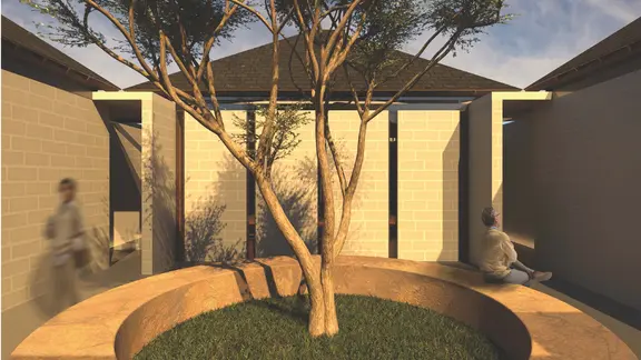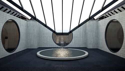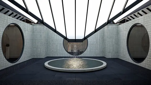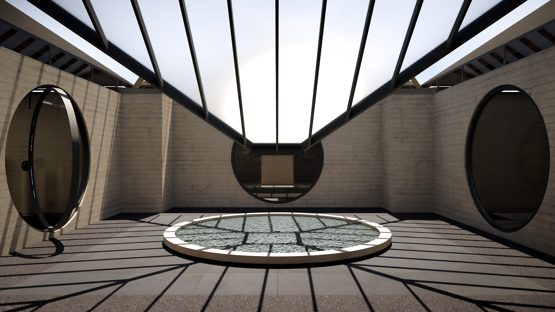 Ein erfolgreicher Leuchtenfabrikant, leidenschaftlicher Kunstsammler und glühender Architekturliebhaber reist im Oktober 2022 anlässlich der 50-Jahr-Feier des Kimbell Art Museums – eines der Hauptwerke von Louis I. Kahn – in die Vereinigten Staaten. Ein befreundeter Kunstsammler erzählt ihm dort, dass an der Wurzel von Kahns architektonischem Schaffen ein vermeintlich sehr bescheidenes Gebäude in Trenton, NJ zu finden sei. Das weckt die Neugier unseres Protagonisten und er macht sich auf den Weg zu Kahns Trenton Bath House. Seine Begeisterung für die räumliche Vielschichtigkeit, die atmosphärische Dichte und die ständig wechselnden Lichtstimmungen des Gebäudes kennt keine Grenzen, so dass er beschließt, im Park seines weitläufigen Anwesens einen Ausstellungspavillon für seine neu erworbenen Skulpturen als exakte Replik von Kahns Bath House errichten zu lassen. Beseelt von dieser Idee nimmt er Kontakt zu Ihnen auf und bittet Sie um entsprechende Umsetzung.