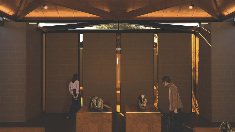 In der ihm eigenen Art nimmt der Bauherr Sie direkt in die Pflicht und gibt Ihnen 3 Monate Zeit, ihn mit einem Entwurf zur Präsentation seiner Kunstwerke in dem von Ihnen zu gestaltenden Ausstellungspavillon zu überzeugen. Ganz wie bei Kahn soll der Umgang mit dem Material und dessen Interaktion mit dem Tageslicht im Zentrum aller Überlegungen stehen - die entsprechenden Oberlichtbereiche sind bereits vorgesehen und können von Ihnen weiterentwickelt bzw. ergänzt werden. Über allem steht hierbei die Frage, wie sich Kahns „Urhütte“ mit den gestalterischen und technischen Anforderungen eines Ausstellungsraums vereinbaren lässt.
