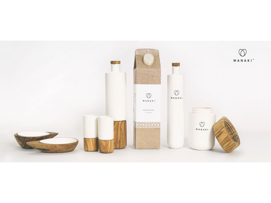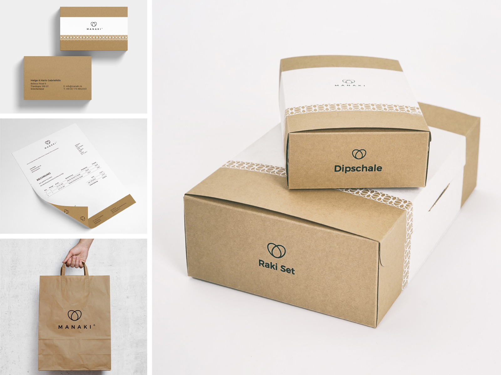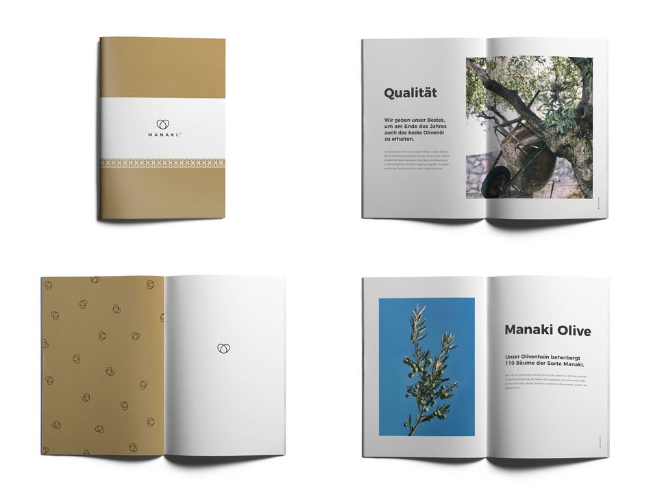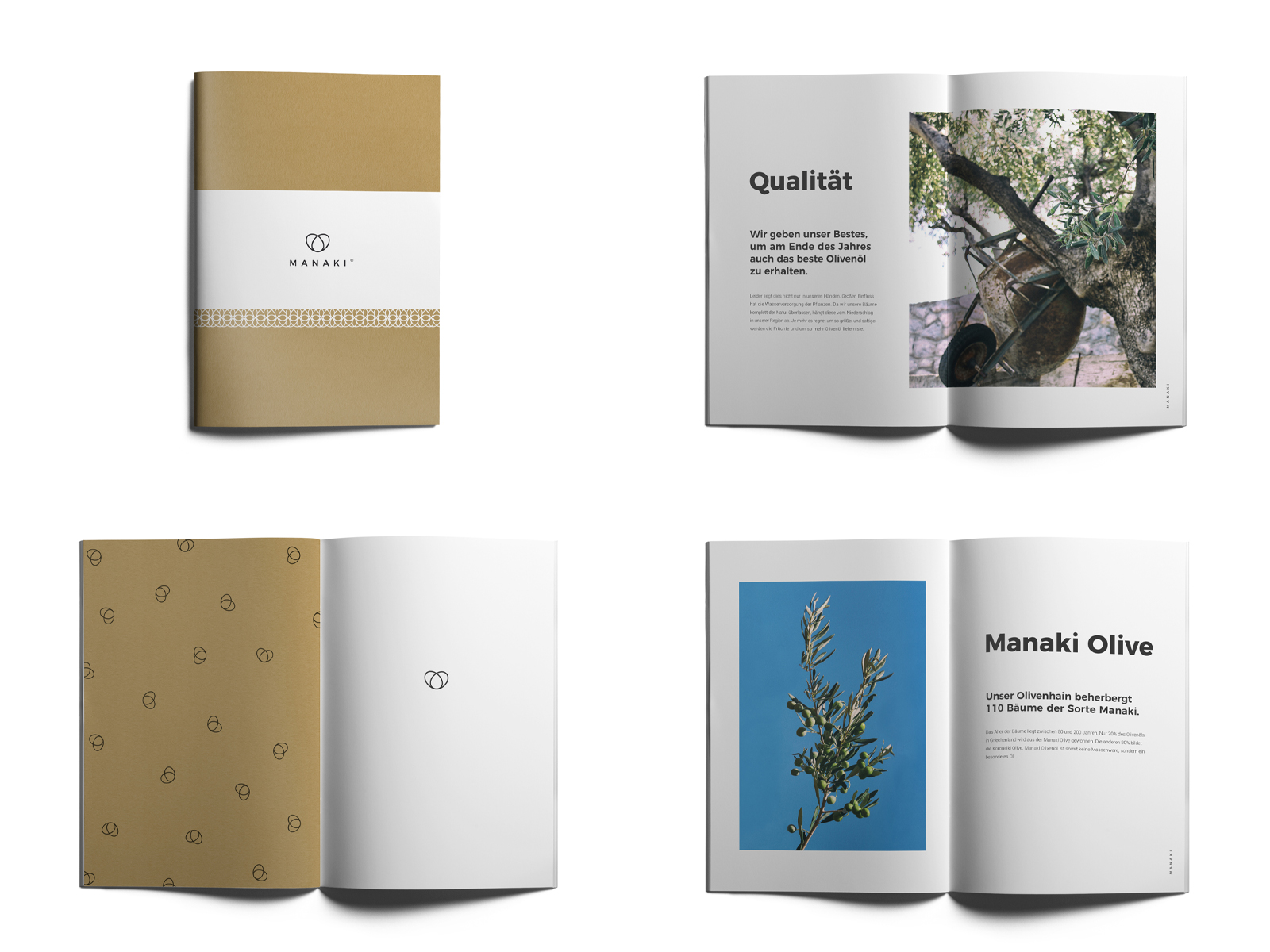 Manaki - z. Dt. „Mütterchen“ - ist der Name eines Familienunternehmens in Griechenland. Das von den Großeltern geführte Unternehmen erntet jedes Jahr gegen Ende Oktober blassgrüne Oliven und stellt damit Olivenöl und eingelegte Oliven her. Den intensiven und würzigen Geschmack liefert die besondere Olivensorte, welche auf dem Hain wächst, die Manaki Olive. Neben dem Entwurf eines Logos, neuer Verpackungen, Visitenkarten, Rechnungs-/Briefpapier und einer Broschüre wurde eine Produktserie entworfen. Der hohe Schwarz-Weiß Kontrast in Kombination mit dem geradlinigen Deisgn verleiht den Produkten eine klassisch hochwertige Anmutung. Das Olivenholz hingegen symbolisiert das griechische Flair und steht für Handwerk und Tradition. Das, mit der Bildmarke, entstandene Muster erinnert an traditionell griechisch gehäkelte Tischdecken und somit an Tischkultur.