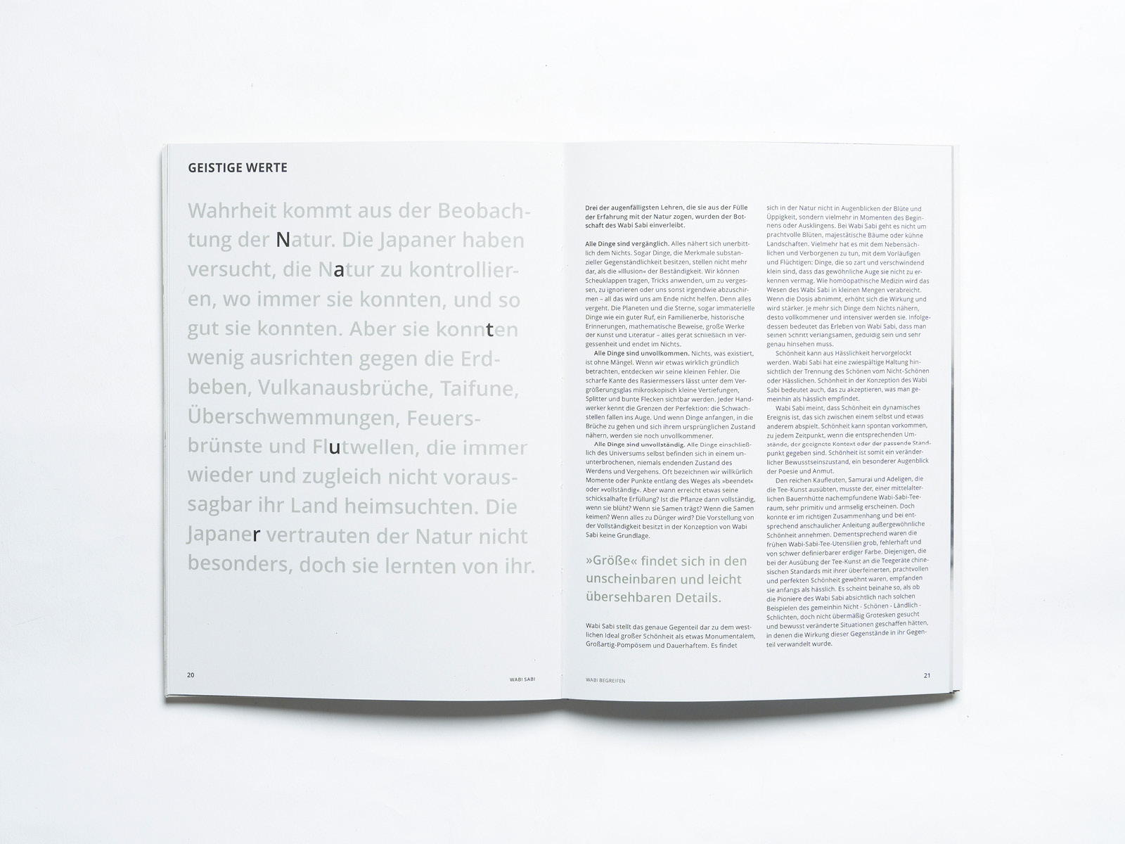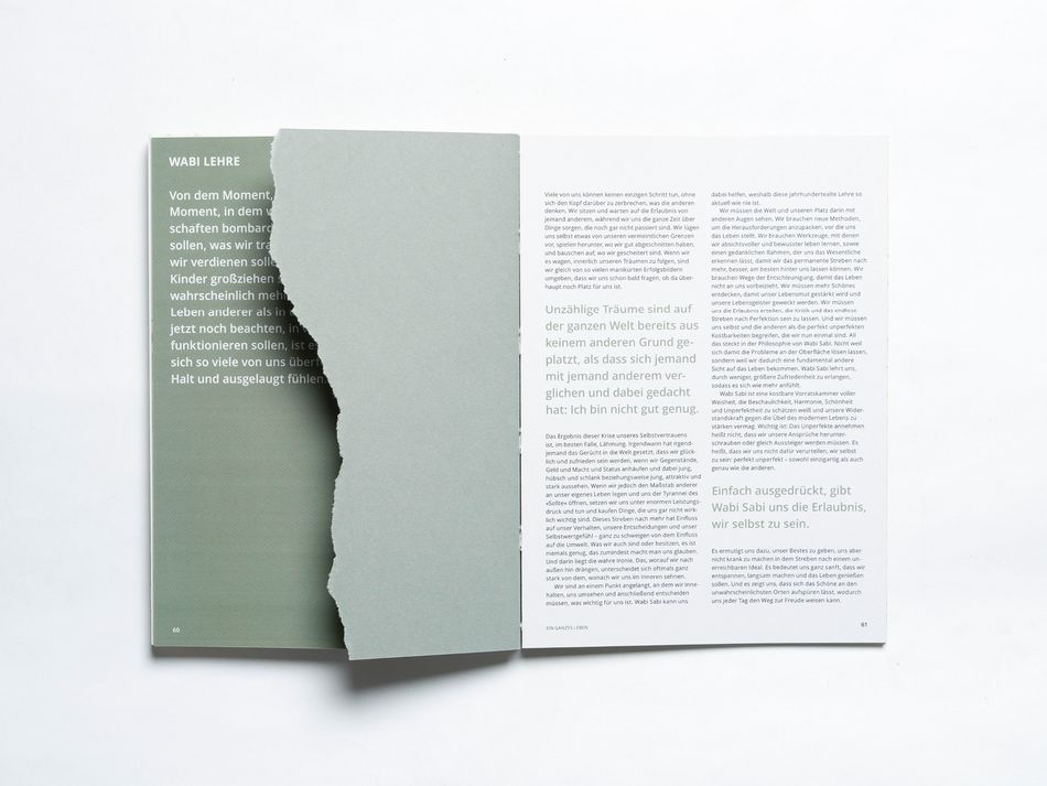 Typografische Konzeption und Buchgestaltung zum Thema „Wabi Sabi – Wabi sehen. Wabi verstehen. Wabi leben.“