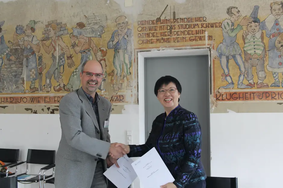 Die Präsidentin Frau Liao Qing unterzeichnete gemeinsam mit dem Vizepräsidenten der Hochschule Trier, Prof. Dr. Regier eine Kooperationsvereinbarung, die nun in Peking ratifiziert werden muß.