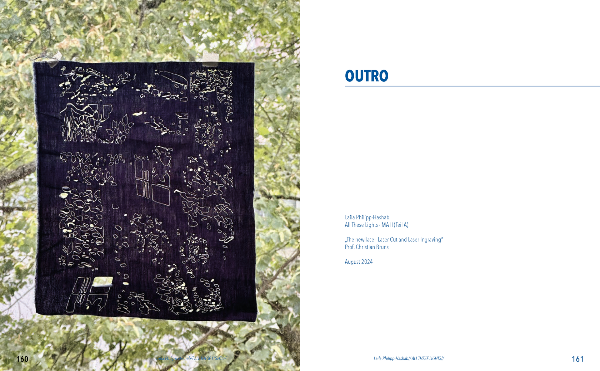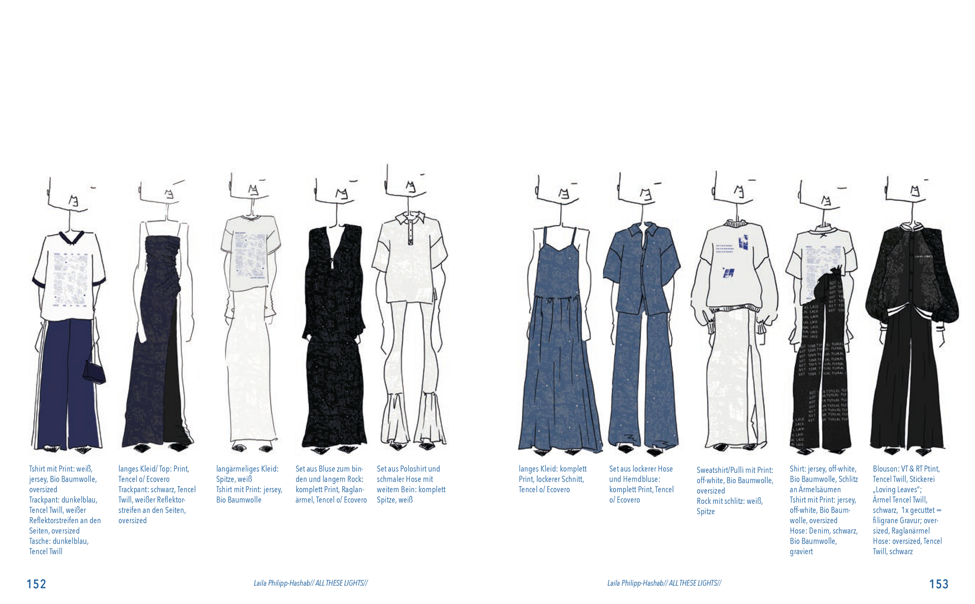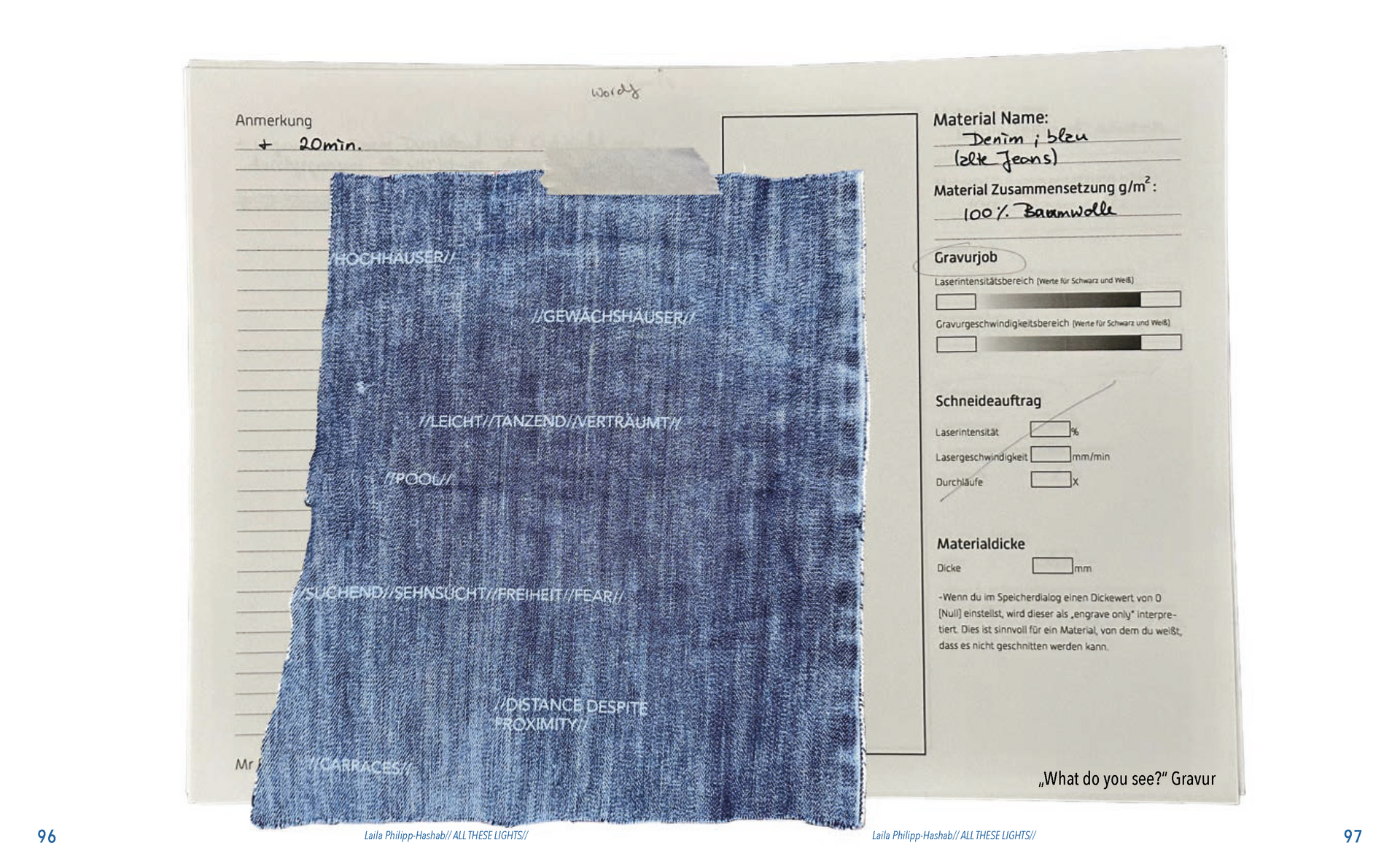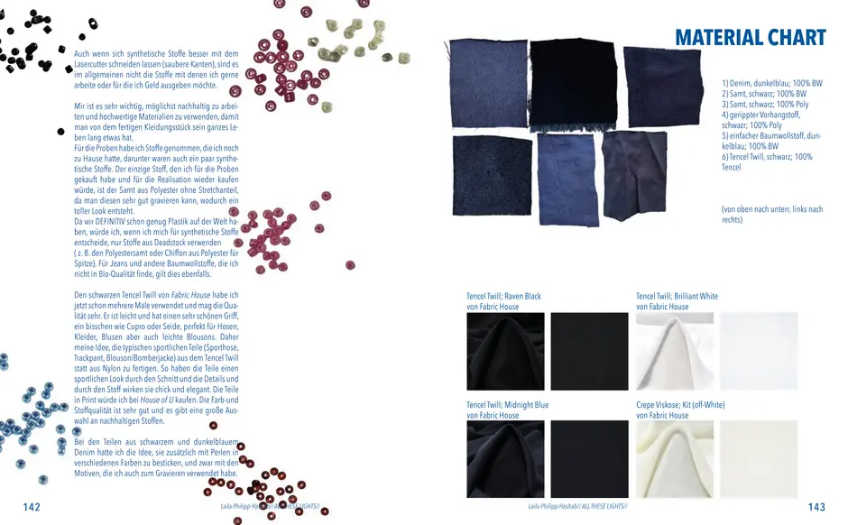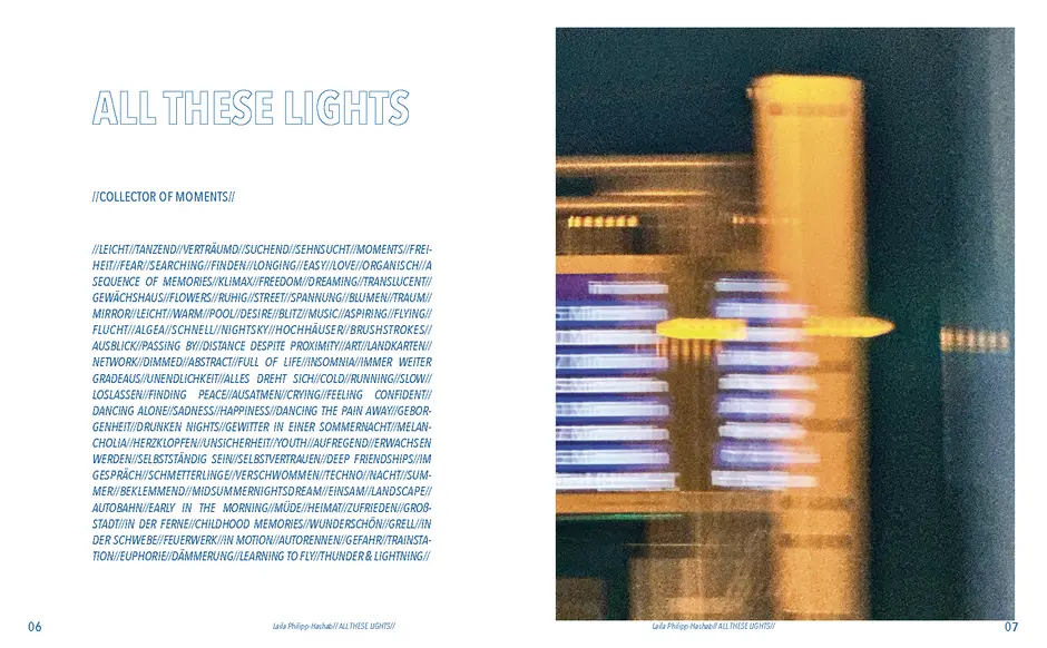 Aus der Umfrage, die ich in meiner Bachelor Thesis zu meinen Lichterfotos gemacht habe sind damals eine Reihe von Assoziationen hervorgegangen. Diese habe ich dann verwendet um eine T-Shirt-Kollektion zu entwerfen. Außerdem sind dadurch zwei Gedichte entstanden. Die Assotiationen sowie eins der beiden Gedichte habe ich ebenfalls als Lasercut und -gravur Vorlage verwendet. Die T-Shirt-Kollektion habe ich in dieser Kollektion weitergeführt. Das zweite Thema ist „Loving Leaves“. Während der Arbeit an dem Semesterprojekt und den verschiedenen Themen, ist dieses Thema zusammen mit „All These Lights“ zu meinen Favoriten geworden und „Loving Leaves“ quasi zum zweiten Hauptthema.