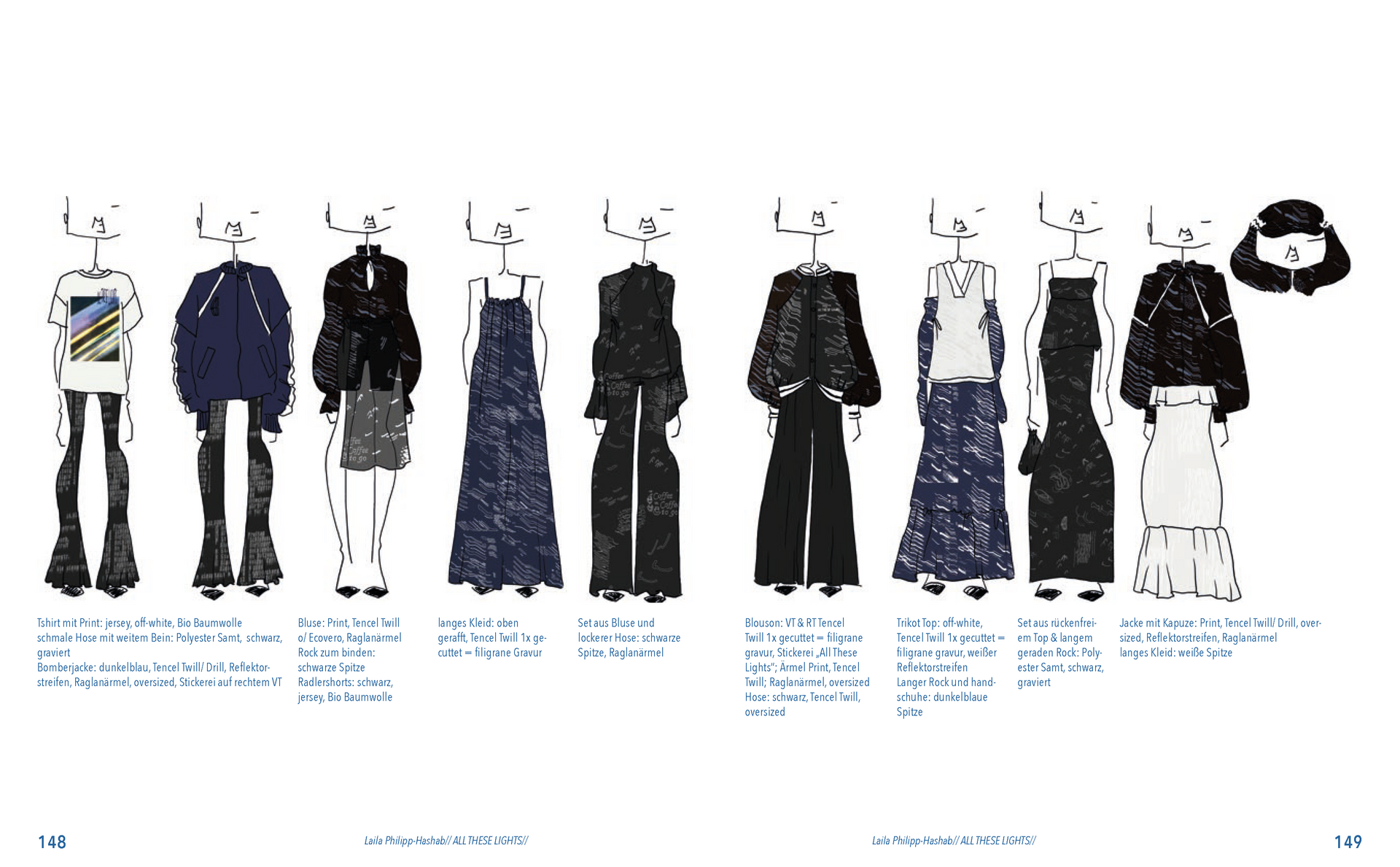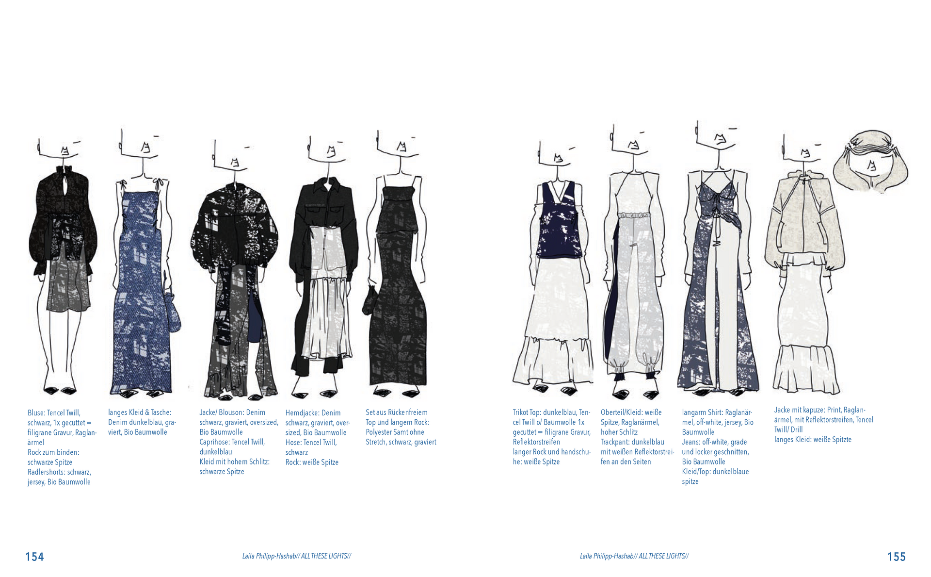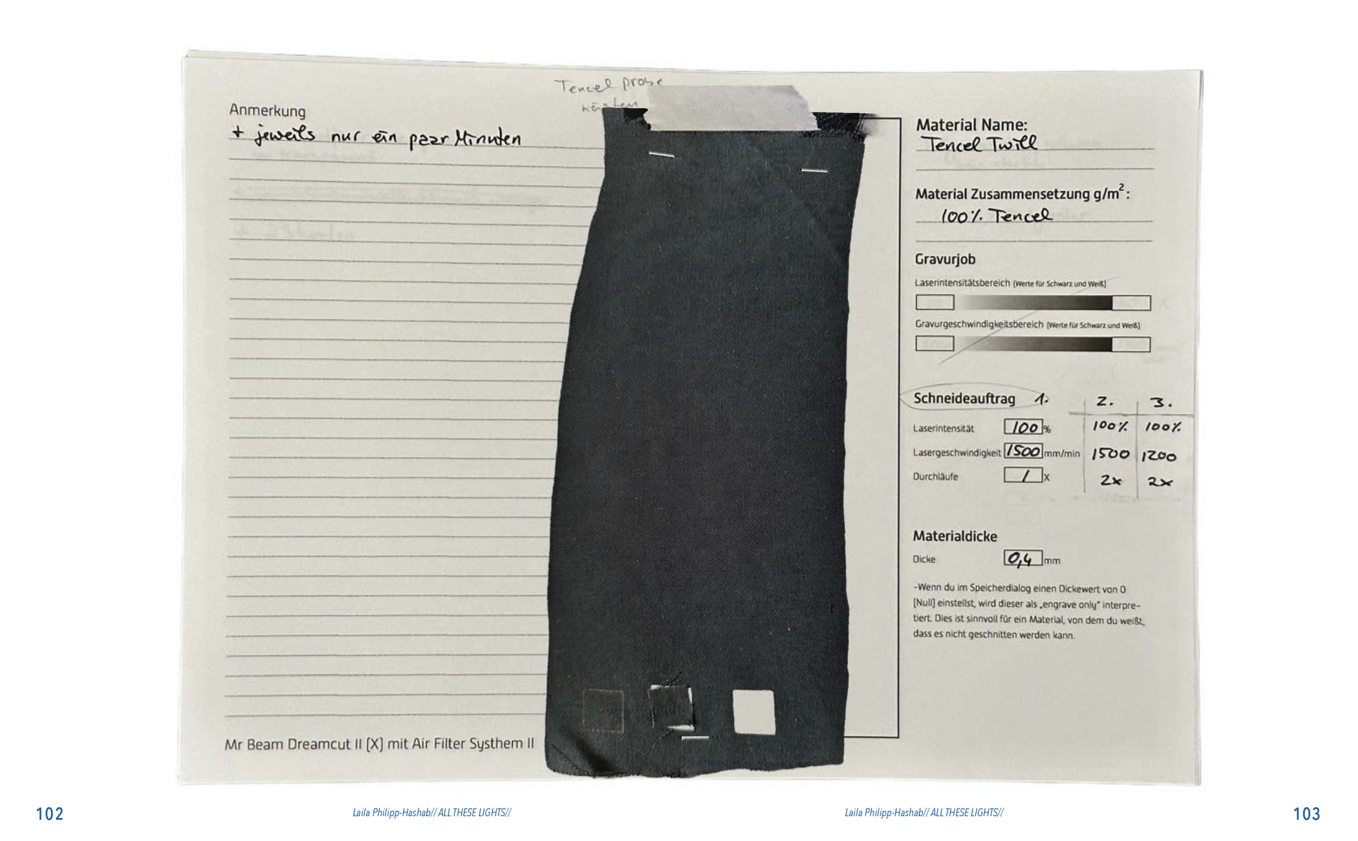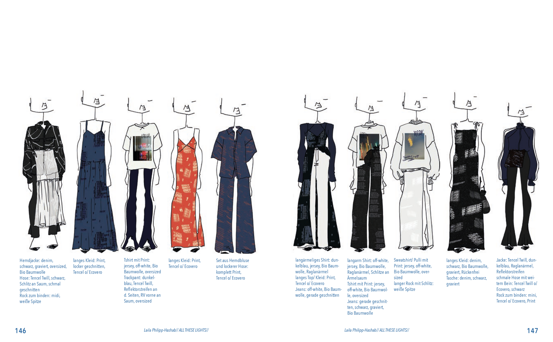 Aus der Umfrage, die ich in meiner Bachelor Thesis zu meinen Lichterfotos gemacht habe sind damals eine Reihe von Assoziationen hervorgegangen. Diese habe ich dann verwendet um eine T-Shirt-Kollektion zu entwerfen. Außerdem sind dadurch zwei Gedichte entstanden. Die Assotiationen sowie eins der beiden Gedichte habe ich ebenfalls als Lasercut und -gravur Vorlage verwendet. Die T-Shirt-Kollektion habe ich in dieser Kollektion weitergeführt. Das zweite Thema ist „Loving Leaves“. Während der Arbeit an dem Semesterprojekt und den verschiedenen Themen, ist dieses Thema zusammen mit „All These Lights“ zu meinen Favoriten geworden und „Loving Leaves“ quasi zum zweiten Hauptthema.