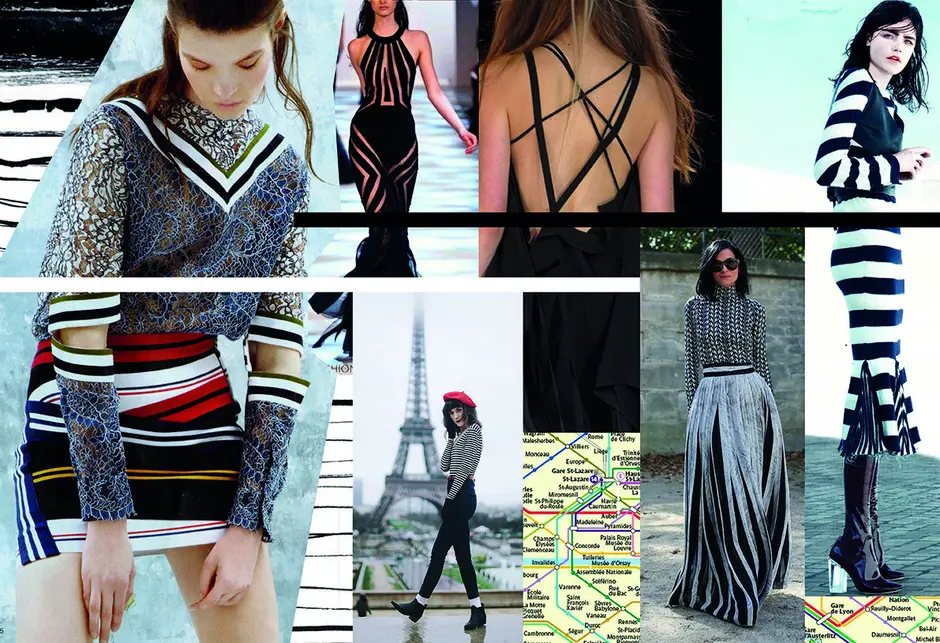 Durch die Vielzahl der Darstellungen von Streifen gewinnt die Kollektion ihre eigene Identität, die, ähnlich dem Charakter der Parisienne, durch Vielfalt besticht, dabei jedoch ihrer eigenen stringenten Linie folgt.“