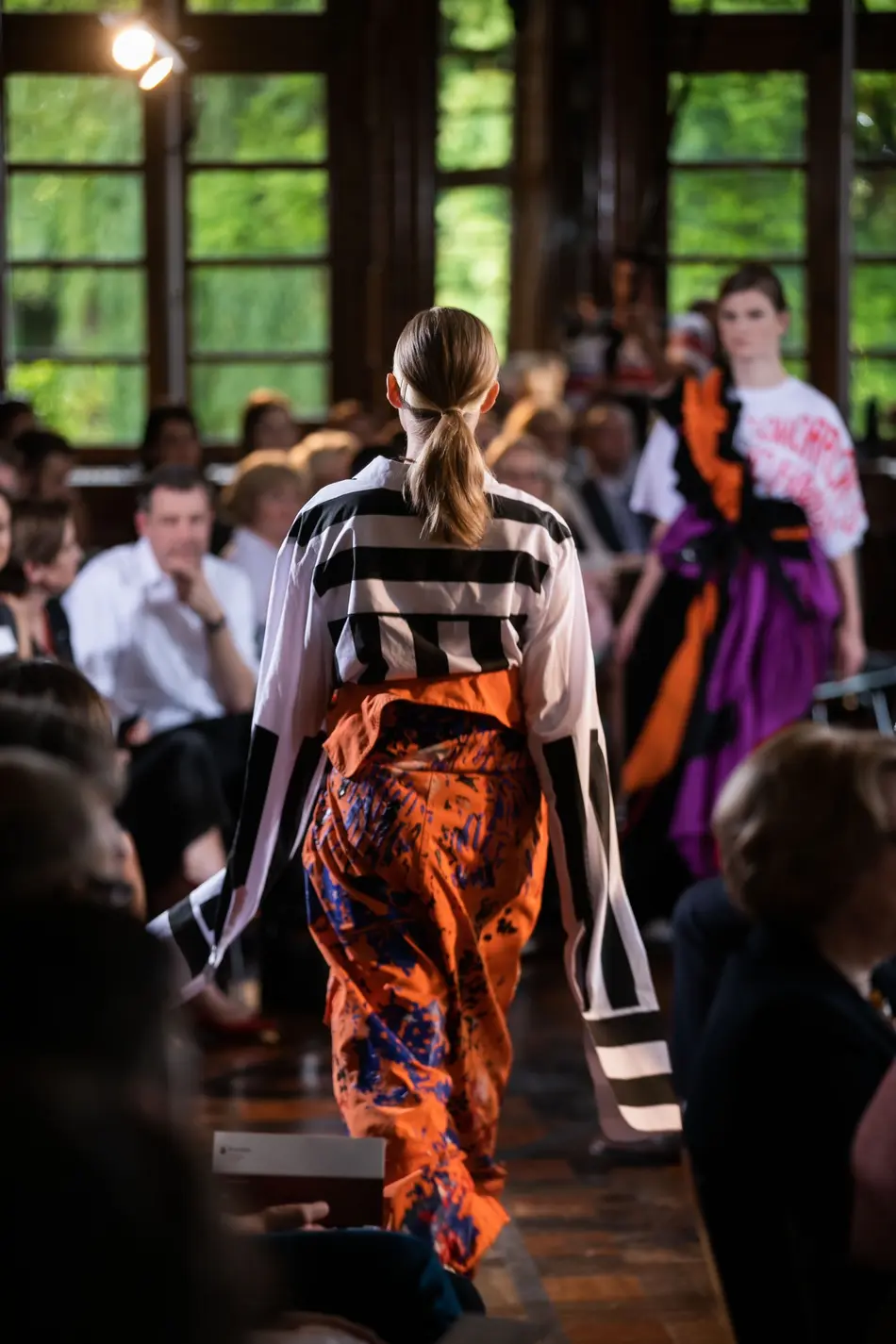 Die Kunst der Inszenierung ist hier keine bloße Floskel, sie wird mit spürbarer Hingabe gelebt. Das sei die Grundlage für Mode, meint Dirk Wolfes, Professor der Hochschule Trier, und am Ende sei das auch die Basis für den Handel. „Emotionalität und Passion gehören zur Arbeit“, sagt er. Es brauche absolute Leidenschaft. Teilweise stecken über 300 Stunden Arbeit in den Kollektionen. Er sei fasziniert davon, wie sehr die Studierenden bei der Sache sind. Inszeniert und organisiert wurde die Modenschau von Elvira Kempf, Lehrbeauftragte am Campus Gestaltung. Zusammen mit den Studierenden der Fachrichtung Modedesign und des Fachbereichs Gestaltung hat sie dieses einmalige Mode-Event realisiert.