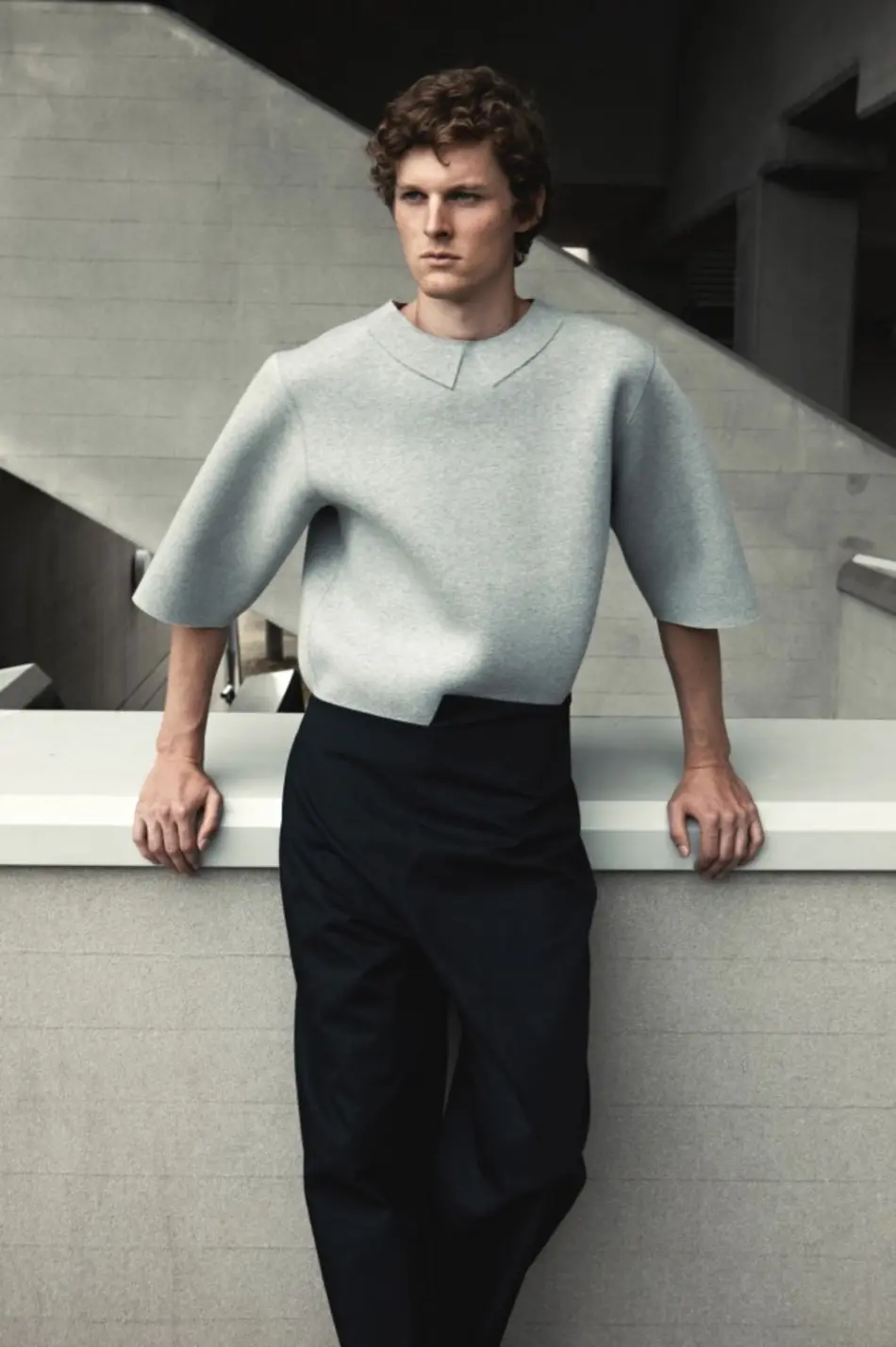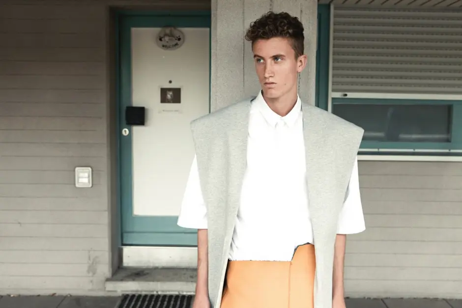Die Diplomarbeit von Kathrin Balk befasst sich mit Brüdern und deren Beziehung zueinander. Von dieser Inspiration ausgehend, ist eine grafische und reduzierte Kollektion, mit einem hohen Kontrast in Farbe und Material, entstanden.
