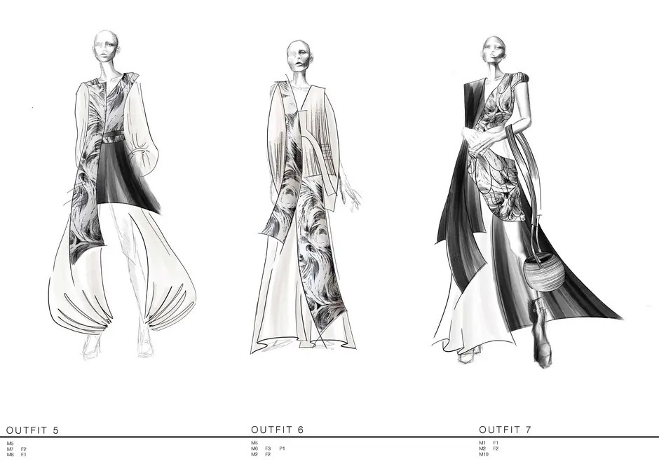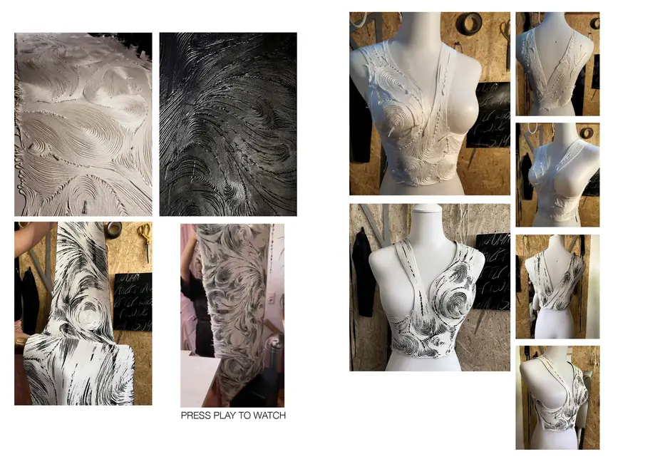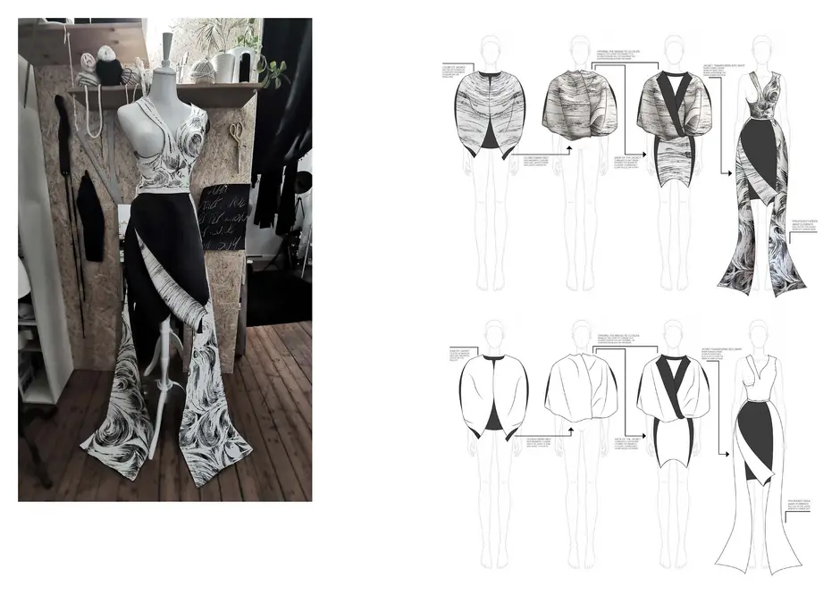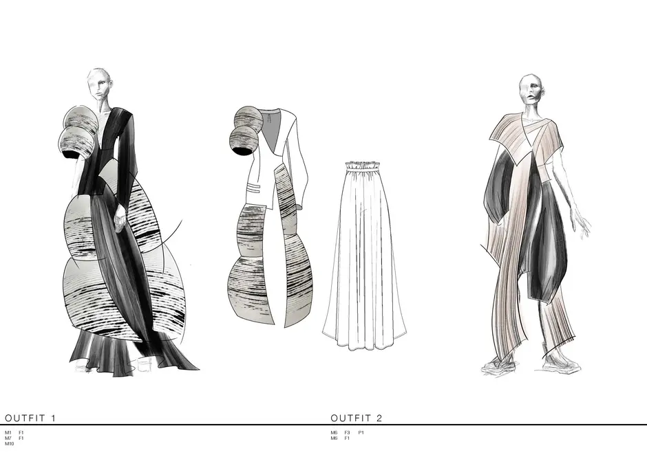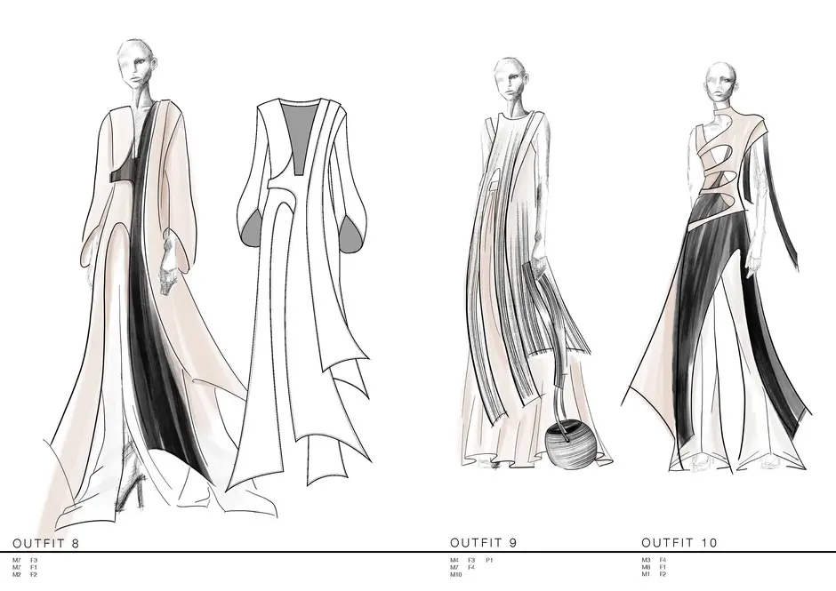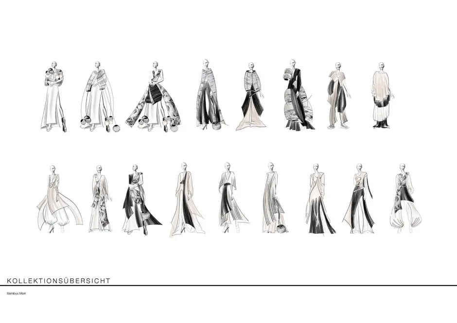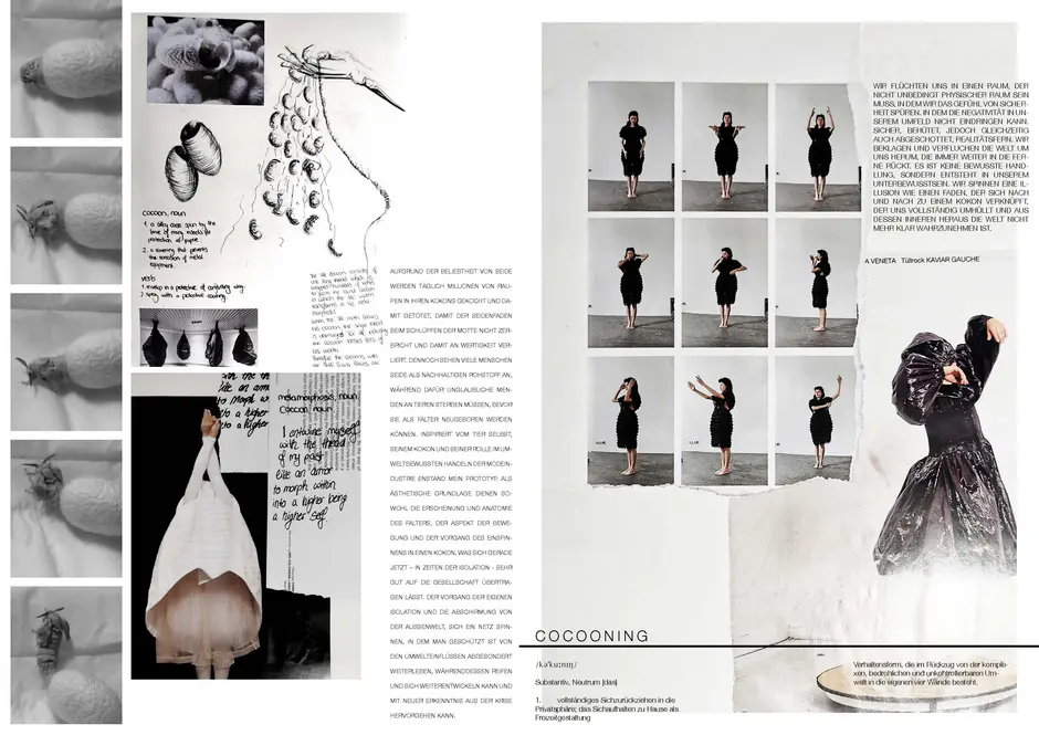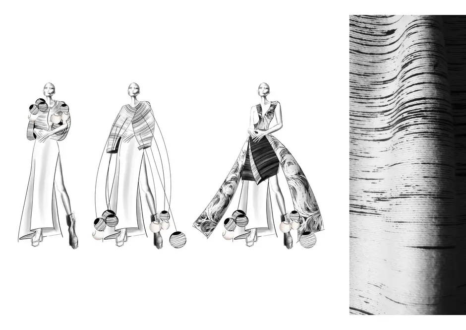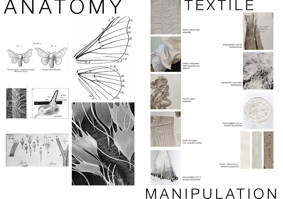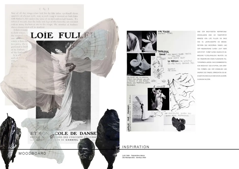 Eine der wichtigsten Inspirationsgrundlagen sind die Tanzperformances von Loïe Fuller, die Ende des 19. Jahrhunderts die Wegbereiterin des modernen Tanzes und der Inszenierung durch Licht war. Der Stoff formt durch gezielte Bewegung flügelähnliche Muster, die die Tänzerin wie einen fliegenden Falter wirken lassen. Das Zusammenspiel von Weichheit des Stoffes, den sanften formen und der Spannung und Energie des Tanzes, erweckten die Assoziation eines aus dem Kokon ausbrechenden Falters.