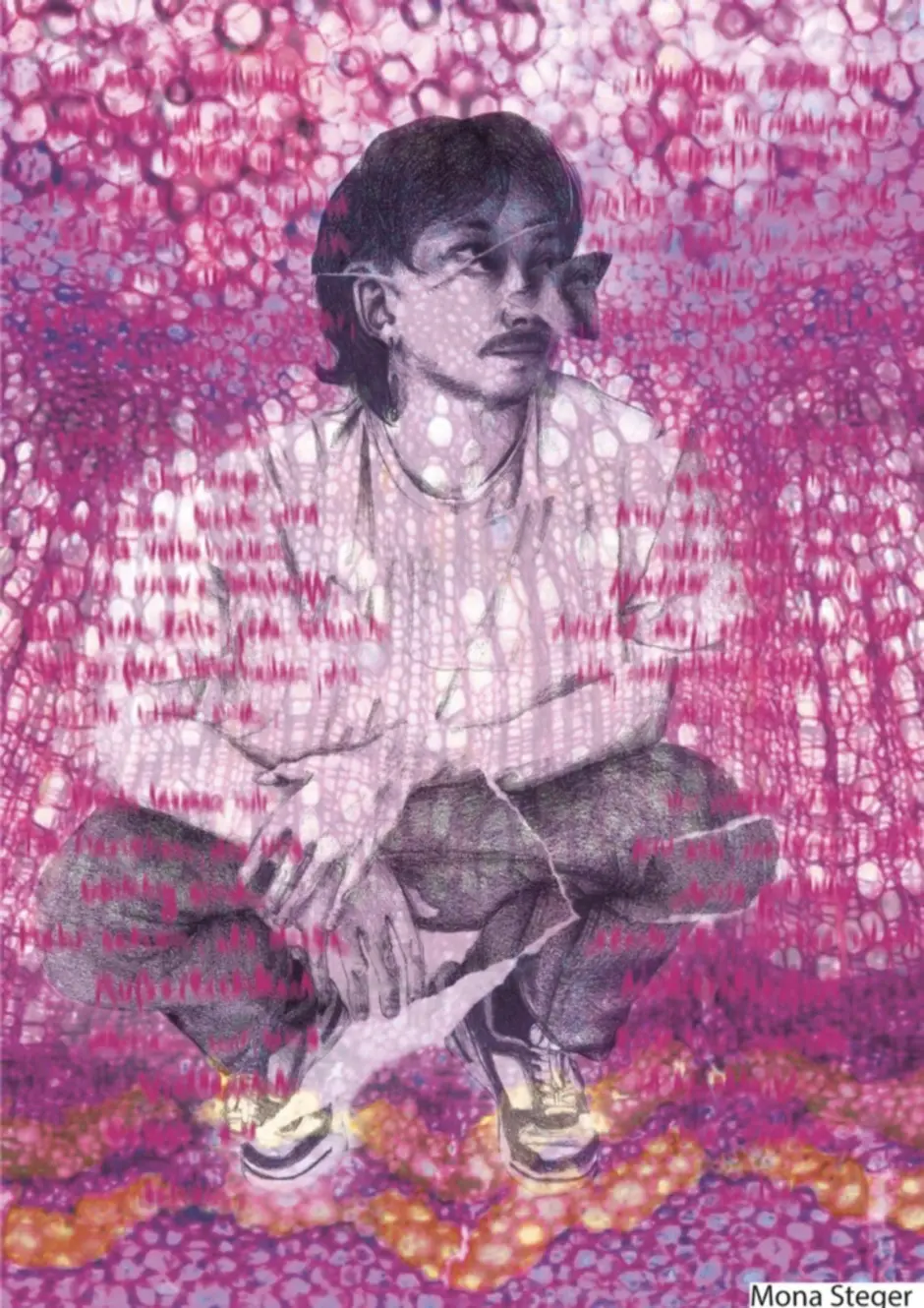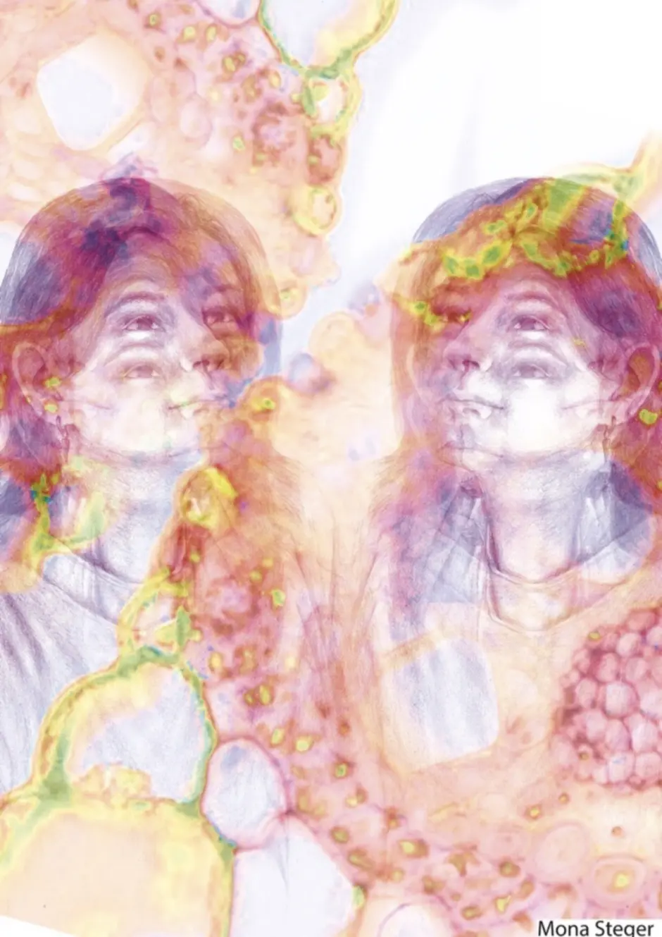 Auf Basis von Fotografien wurden Bleistiftzeichnungen erstellt, die als Grundlage zu unterschiedlichsten, vorrangig digitalen Bearbeitungen dienten. Botanische Schnitte, wie Querschnitte von Blumenstengeln als mikroskopische Fotografie, dienten als Inspirationsquelle zur Bearbeitung der Zeichnungen. Ob mittels Photoshop, als Collage oder mit „analoger“ Farbe koloriert: Die Zeichnungen und die botanischen Schnitte fusionieren miteinander zu individuellen und farbenfrohen Illustrationen, welche die diversen Möglichkeiten der Bildbearbeitung und die individuellen Arbeitsweisen der Studierenden widerspiegeln.