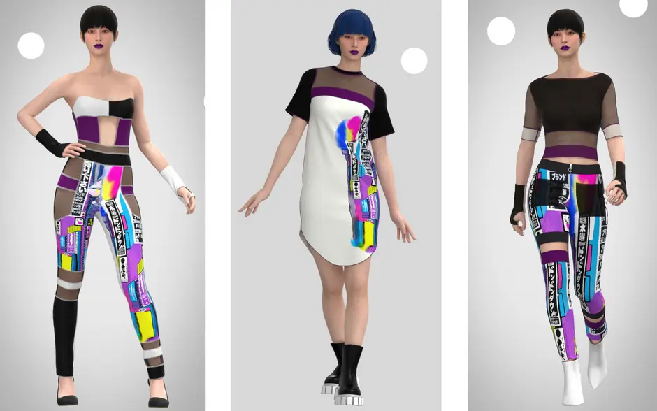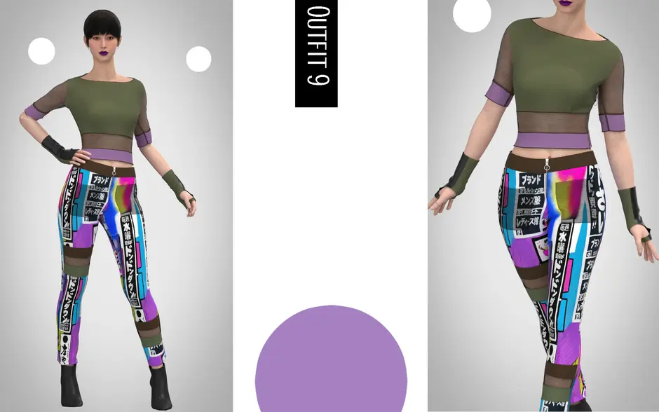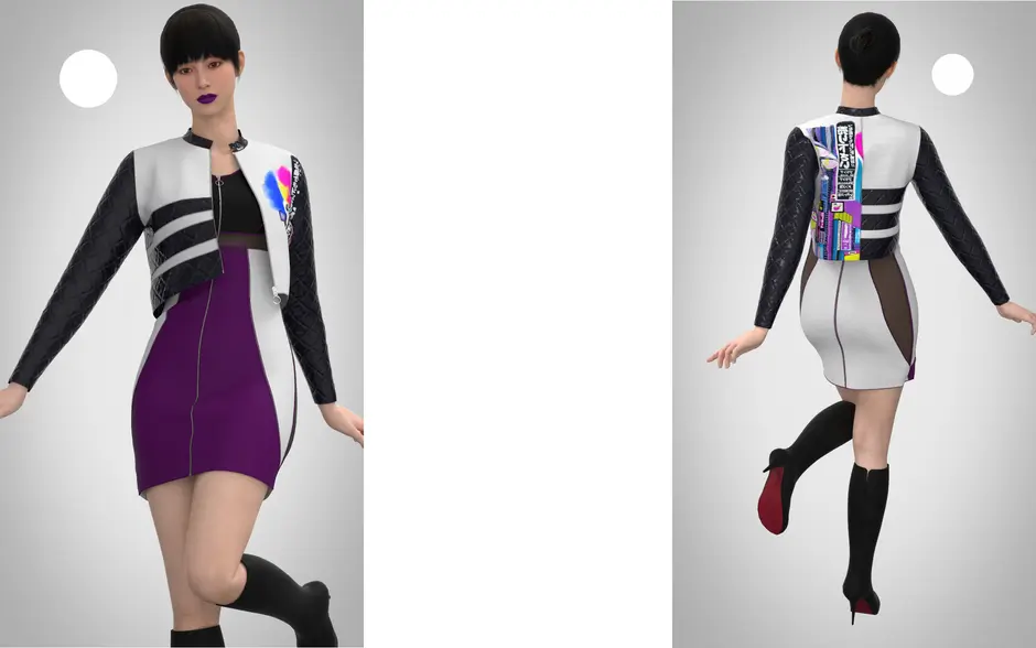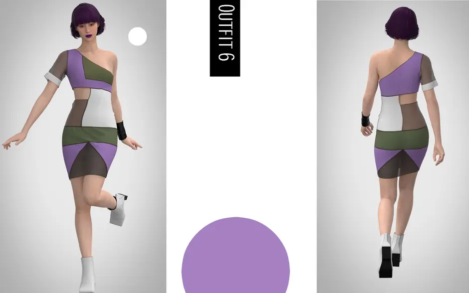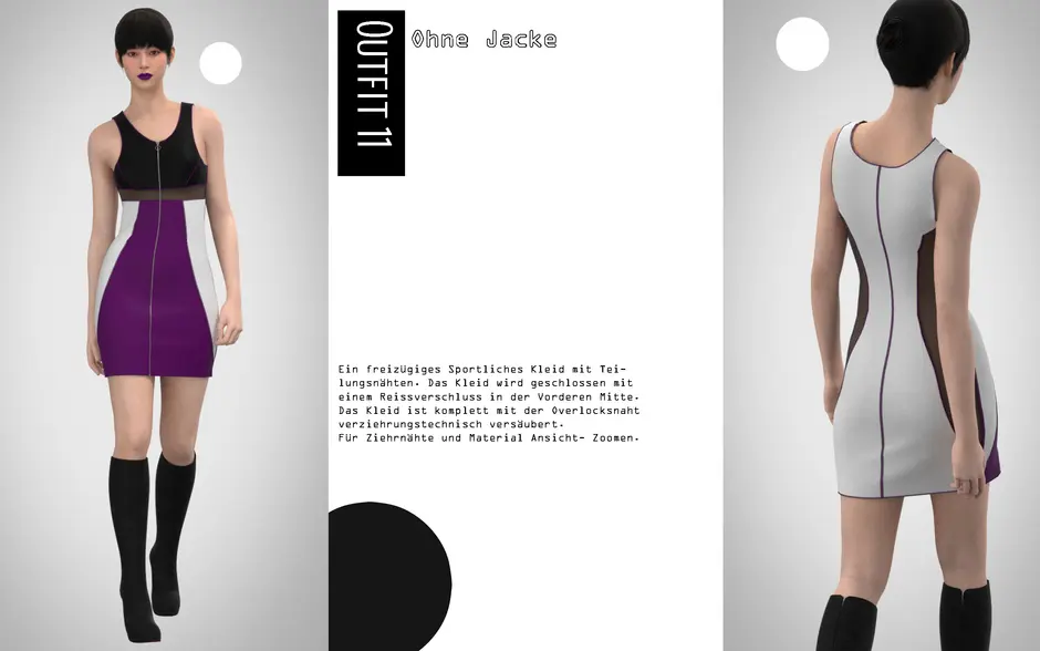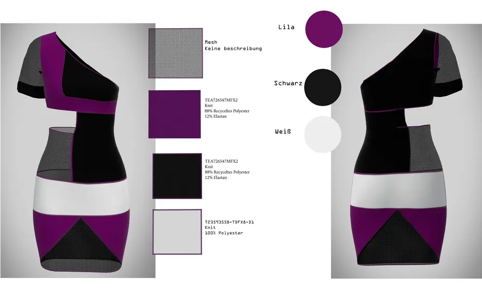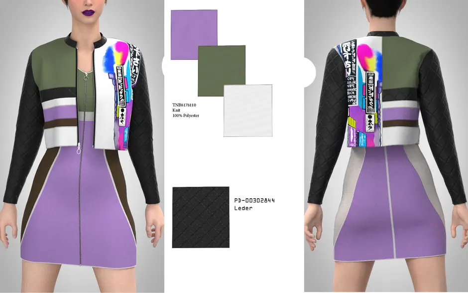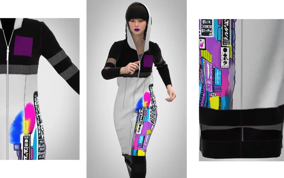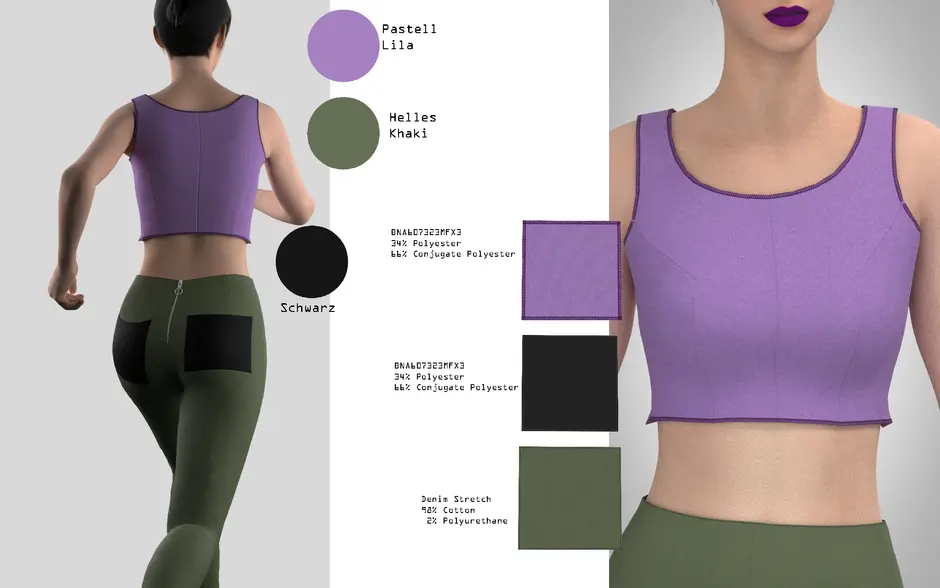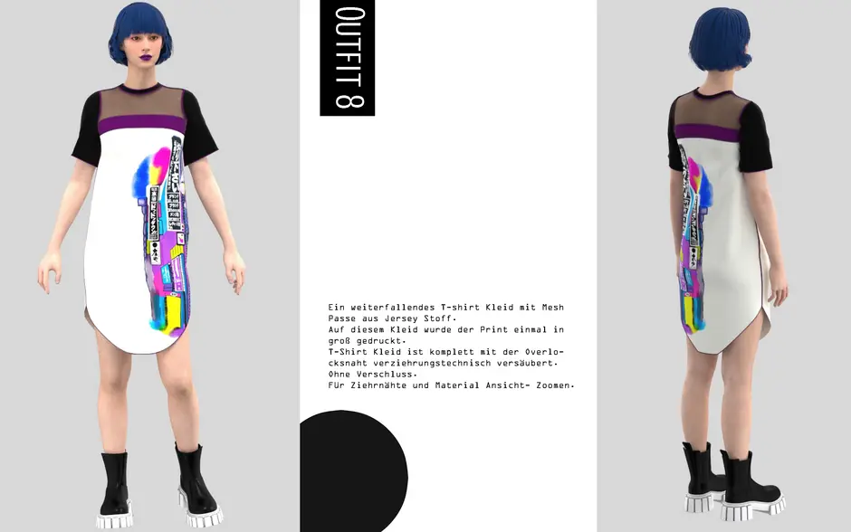 Auch spielen viele Games in Japan. Für die Kleidung habe ich mich von Kampf und Sportbekleidung inspirieren lassen, aber auch von futuristischer Mode. Vor allem Cut outs, waren hierfür eine zusätzliche Inspirationsquelle. Entstanden ist eine Kollektion aus sportlicher Bekleidung, mit einer gewissen Eleganz. Die Teile lassen sich untereinander kombinieren, und könnten zu etlichen verschiedenen Anlässen getragen werden. Als einer der führenden Kräfte der virtuellen Welt, entschied ich mich einen eigenen Japan Print zu malen, welcher sich an die Gassen Tokyos orientiert. Dieser ließ sich gut mit der Sportswear kombinieren und widerspiegelt Großteil des Themas.Gearbeitet habe ich in 2 verschiedenen Farbgruppen, diese bestehen aus Lila, Schwarz und weiß. Farbpalette 2 besteht aus Flieder, braun und hellem Khaki. In meiner Kollektion habe ich mit Clo3D, Photoshop und InDesign gearbeitet.