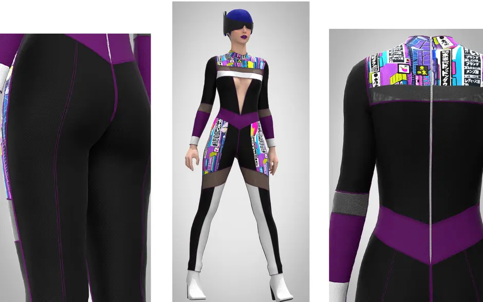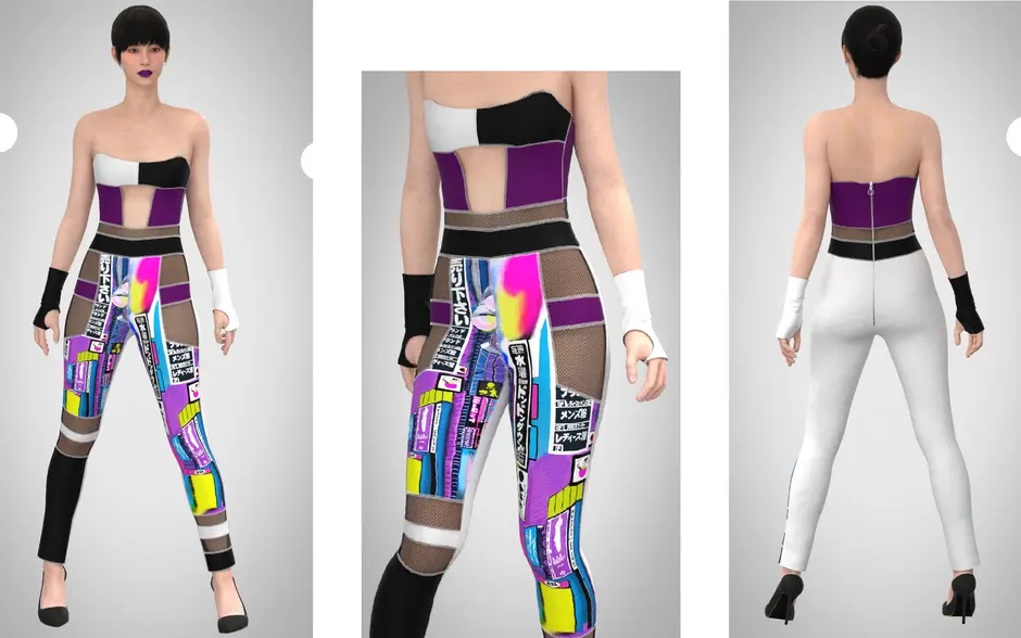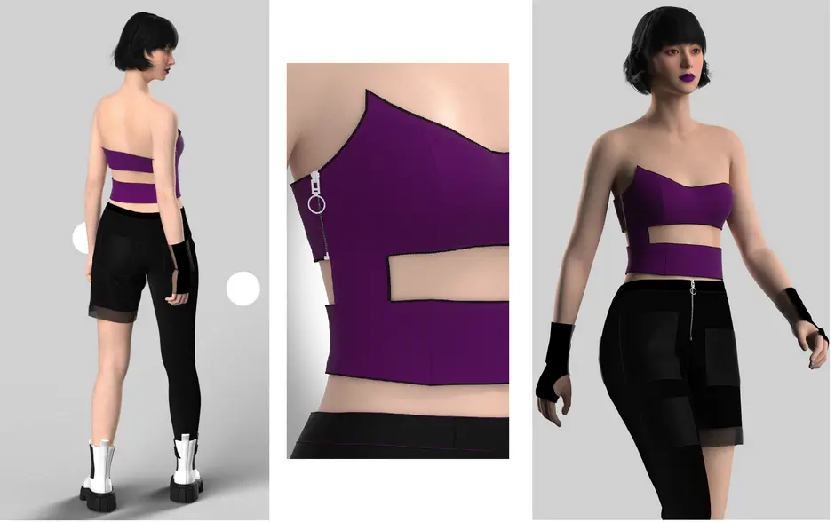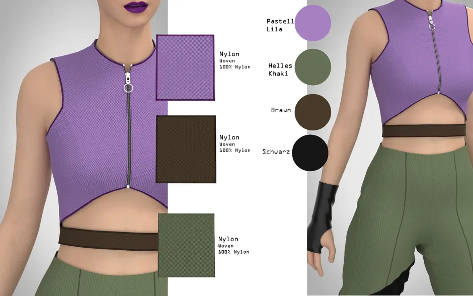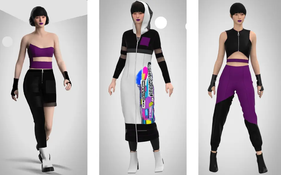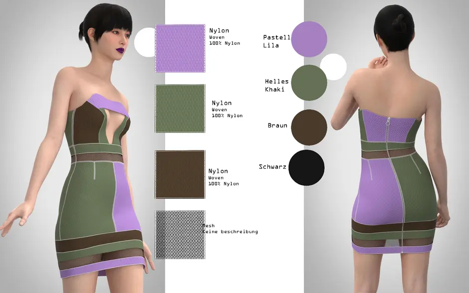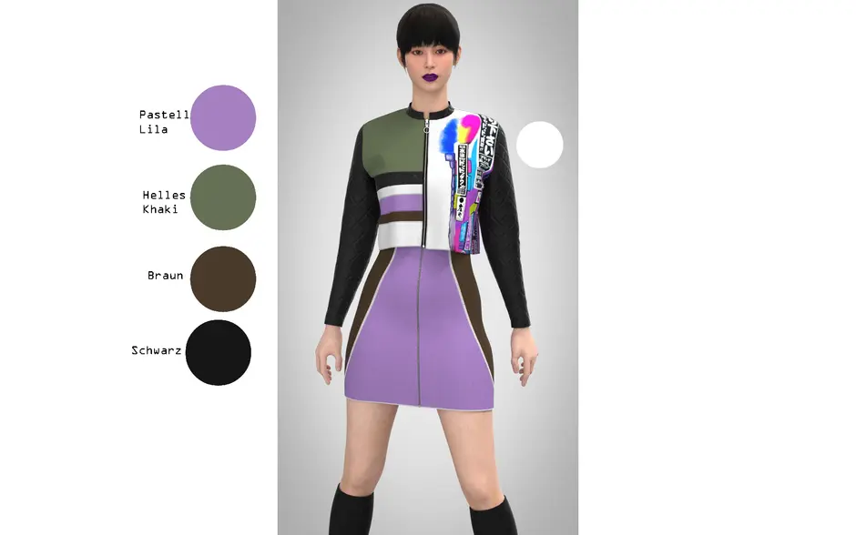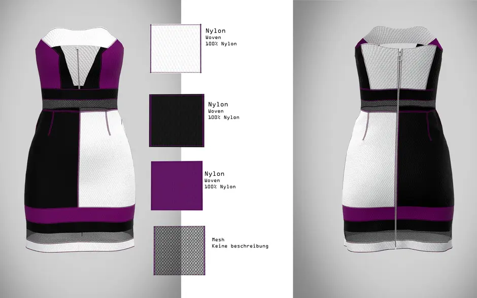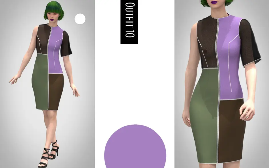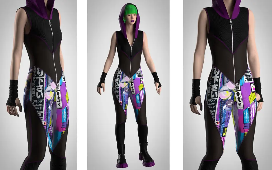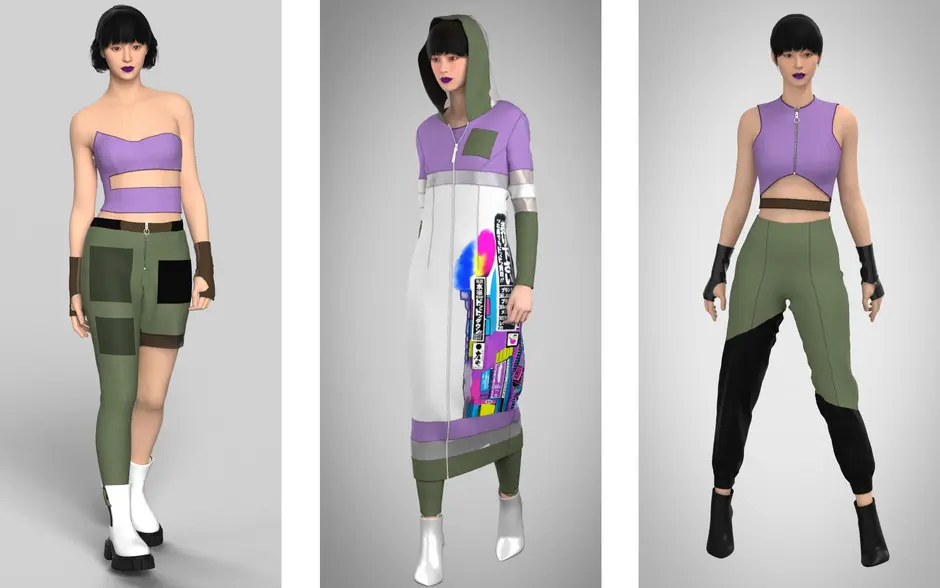 Auch spielen viele Games in Japan. Für die Kleidung habe ich mich von Kampf und Sportbekleidung inspirieren lassen, aber auch von futuristischer Mode. Vor allem Cut outs, waren hierfür eine zusätzliche Inspirationsquelle. Entstanden ist eine Kollektion aus sportlicher Bekleidung, mit einer gewissen Eleganz. Die Teile lassen sich untereinander kombinieren, und könnten zu etlichen verschiedenen Anlässen getragen werden. Als einer der führenden Kräfte der virtuellen Welt, entschied ich mich einen eigenen Japan Print zu malen, welcher sich an die Gassen Tokyos orientiert. Dieser ließ sich gut mit der Sportswear kombinieren und widerspiegelt Großteil des Themas.Gearbeitet habe ich in 2 verschiedenen Farbgruppen, diese bestehen aus Lila, Schwarz und weiß. Farbpalette 2 besteht aus Flieder, braun und hellem Khaki. In meiner Kollektion habe ich mit Clo3D, Photoshop und InDesign gearbeitet.