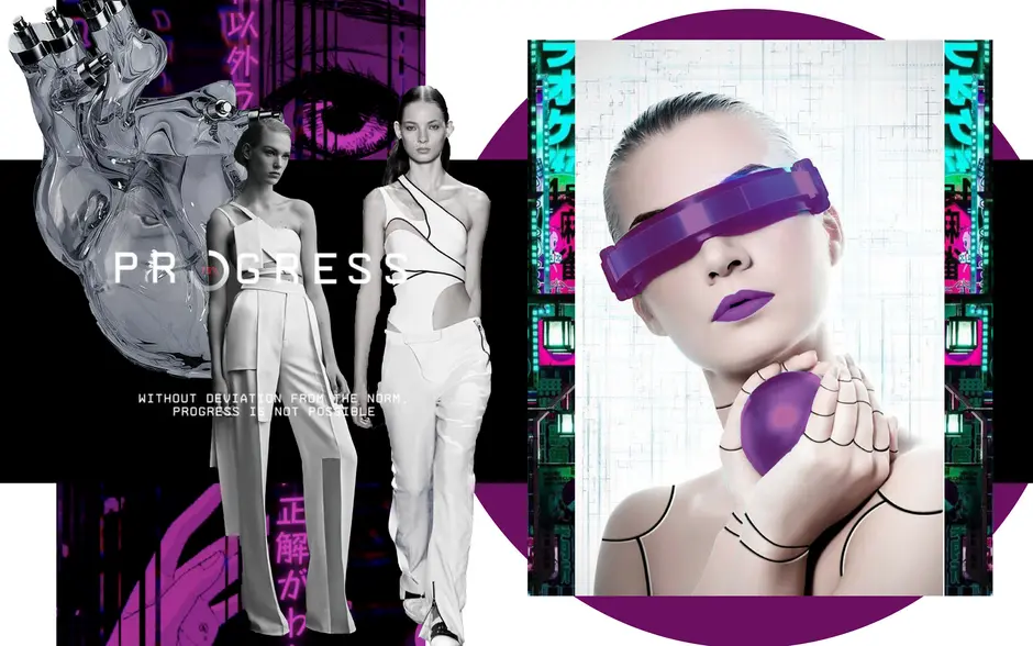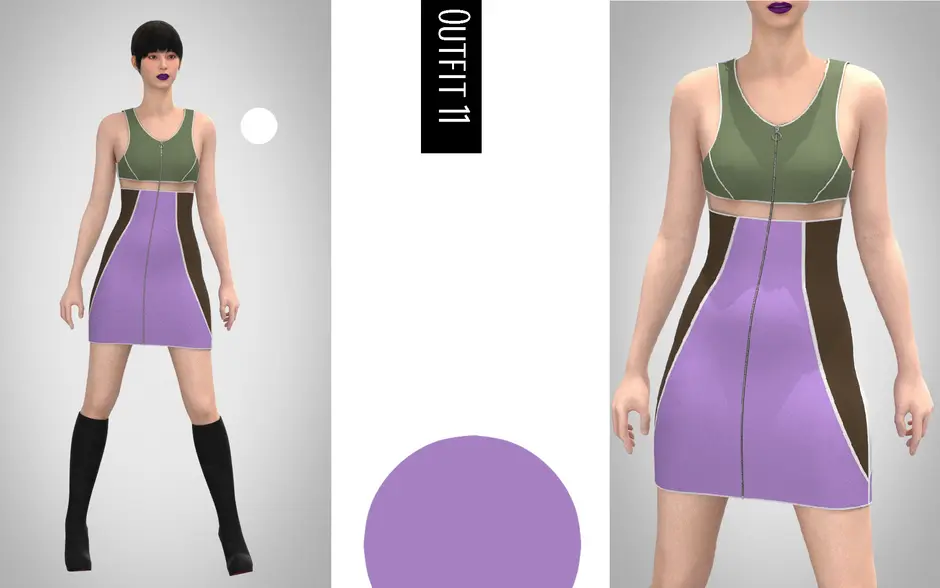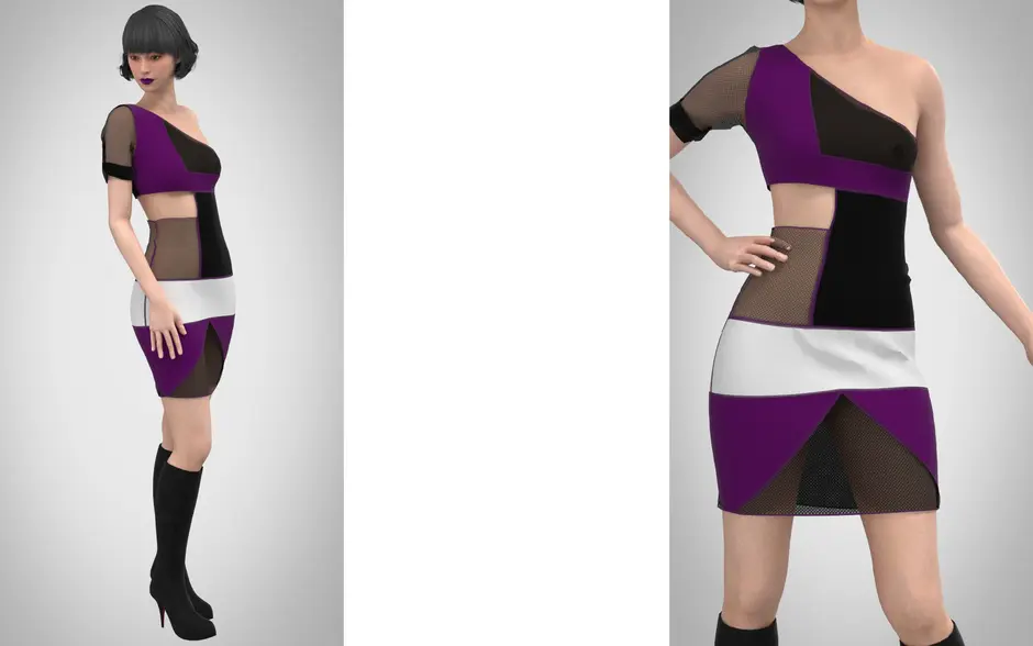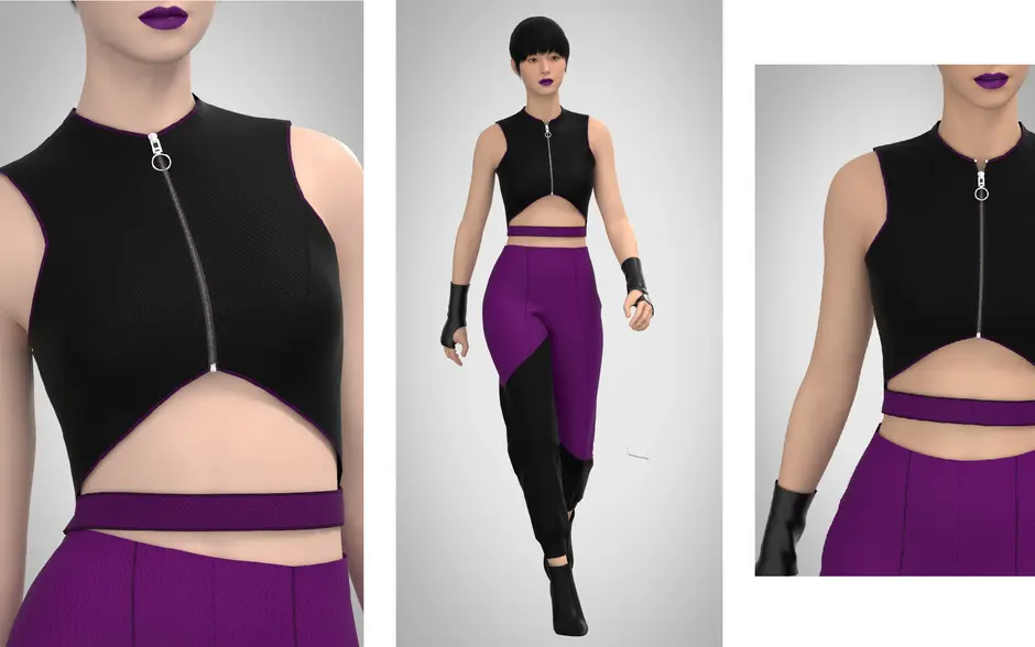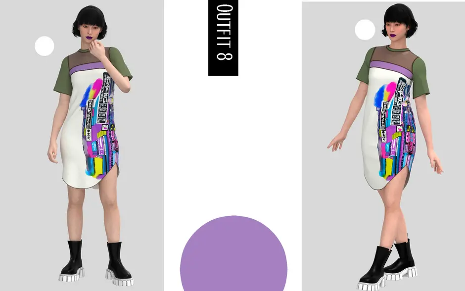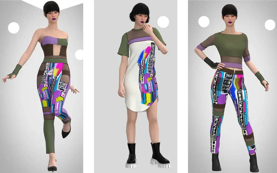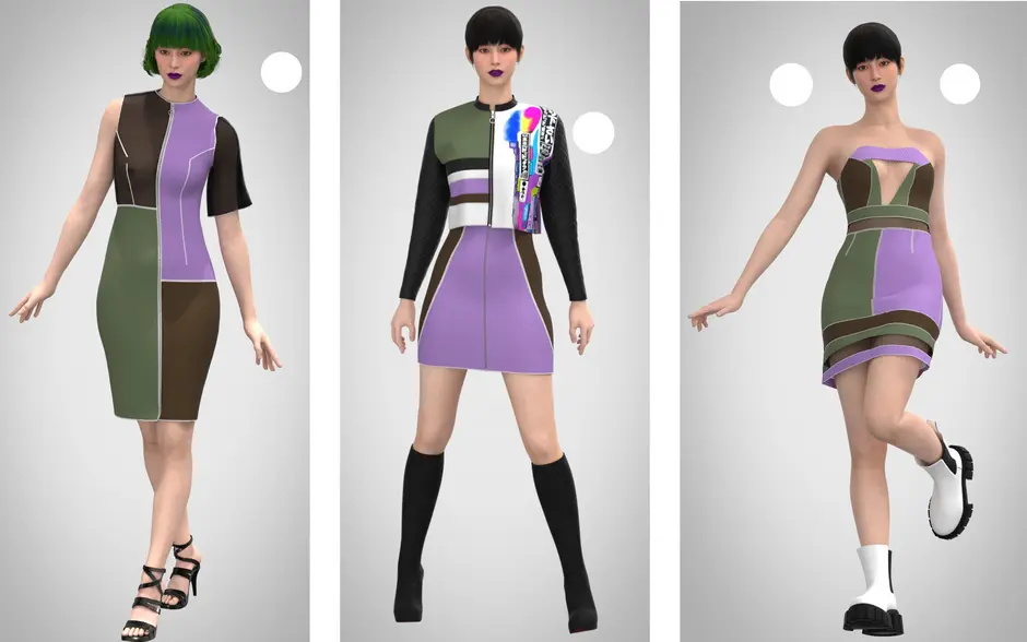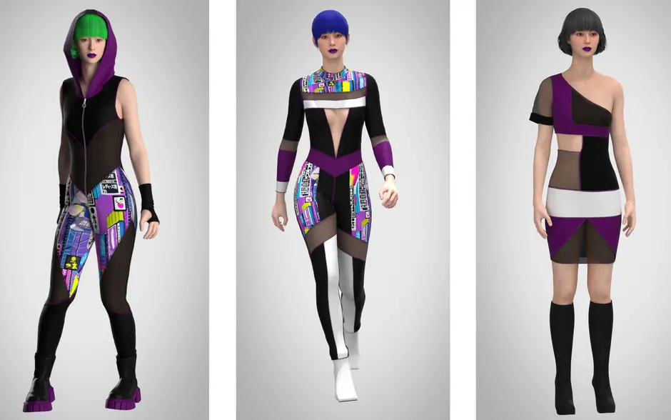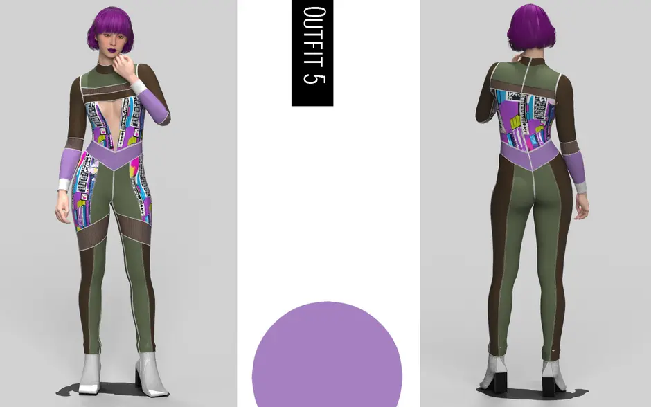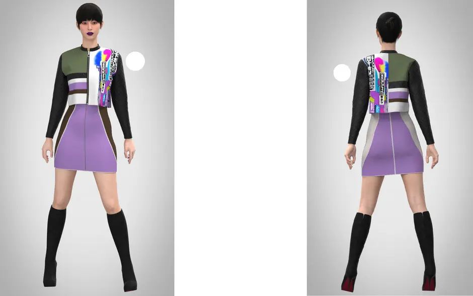 Auch spielen viele Games in Japan. Für die Kleidung habe ich mich von Kampf und Sportbekleidung inspirieren lassen, aber auch von futuristischer Mode. Vor allem Cut outs, waren hierfür eine zusätzliche Inspirationsquelle. Entstanden ist eine Kollektion aus sportlicher Bekleidung, mit einer gewissen Eleganz. Die Teile lassen sich untereinander kombinieren, und könnten zu etlichen verschiedenen Anlässen getragen werden. Als einer der führenden Kräfte der virtuellen Welt, entschied ich mich einen eigenen Japan Print zu malen, welcher sich an die Gassen Tokyos orientiert. Dieser ließ sich gut mit der Sportswear kombinieren und widerspiegelt Großteil des Themas.Gearbeitet habe ich in 2 verschiedenen Farbgruppen, diese bestehen aus Lila, Schwarz und weiß. Farbpalette 2 besteht aus Flieder, braun und hellem Khaki. In meiner Kollektion habe ich mit Clo3D, Photoshop und InDesign gearbeitet.