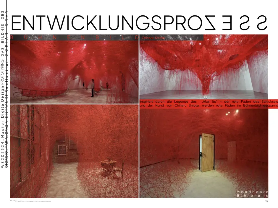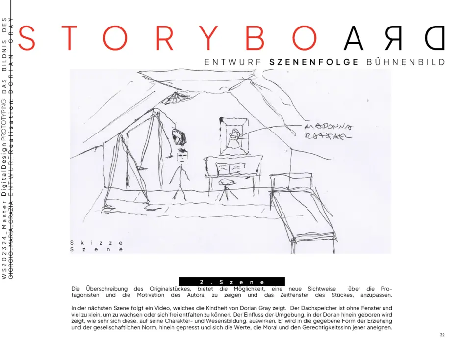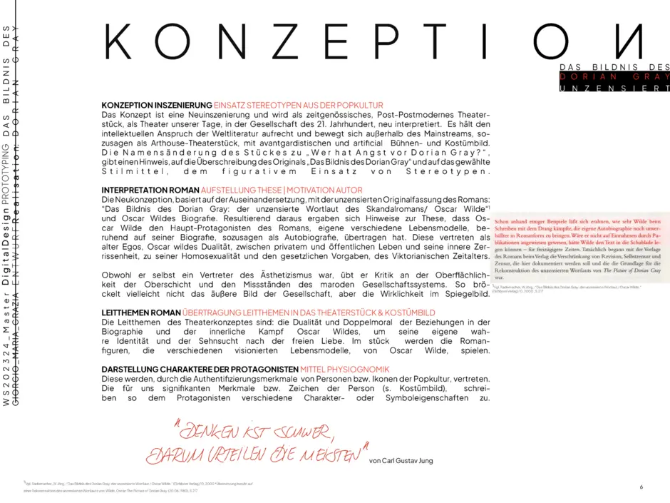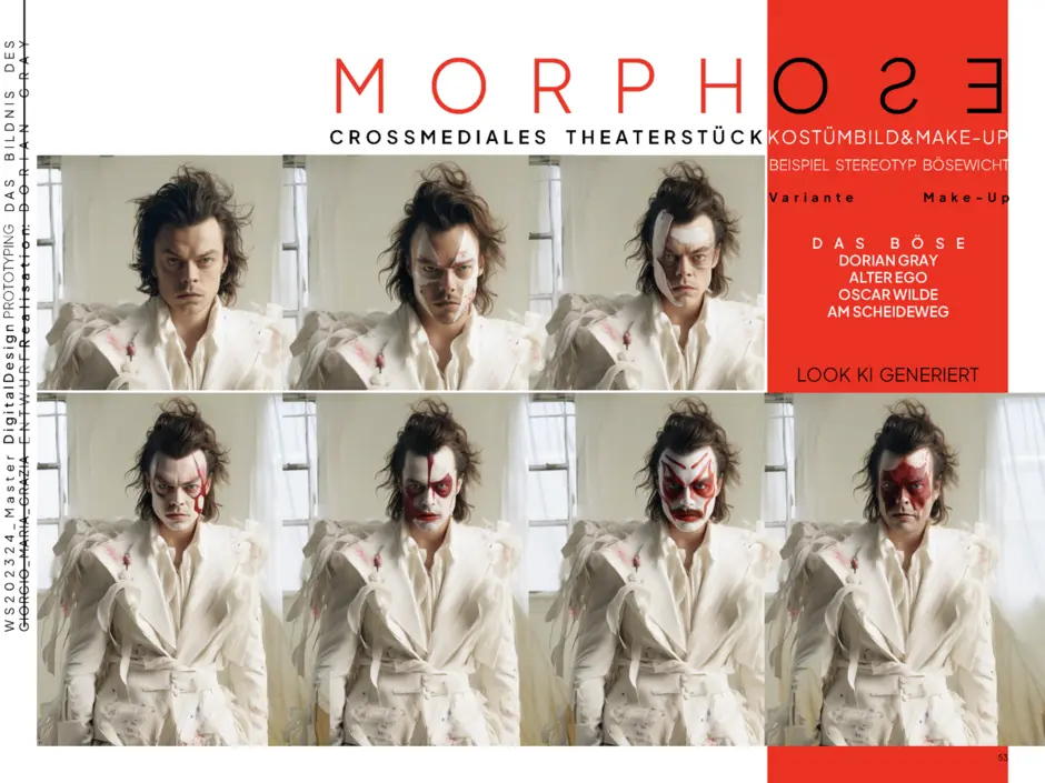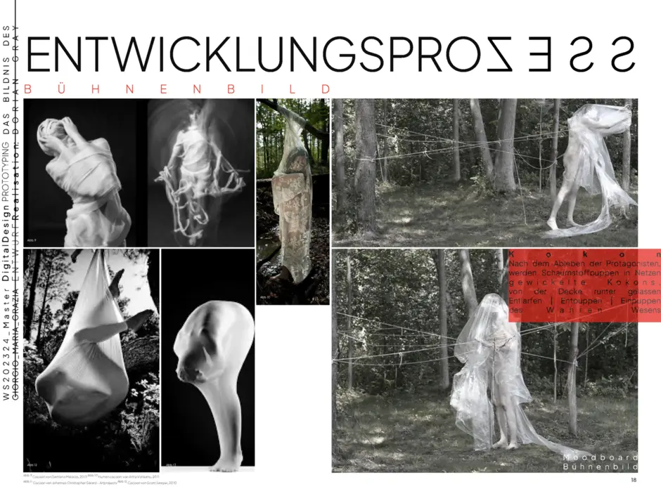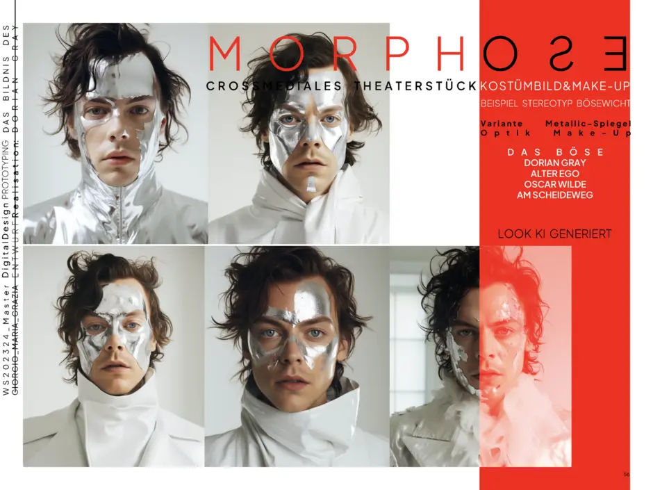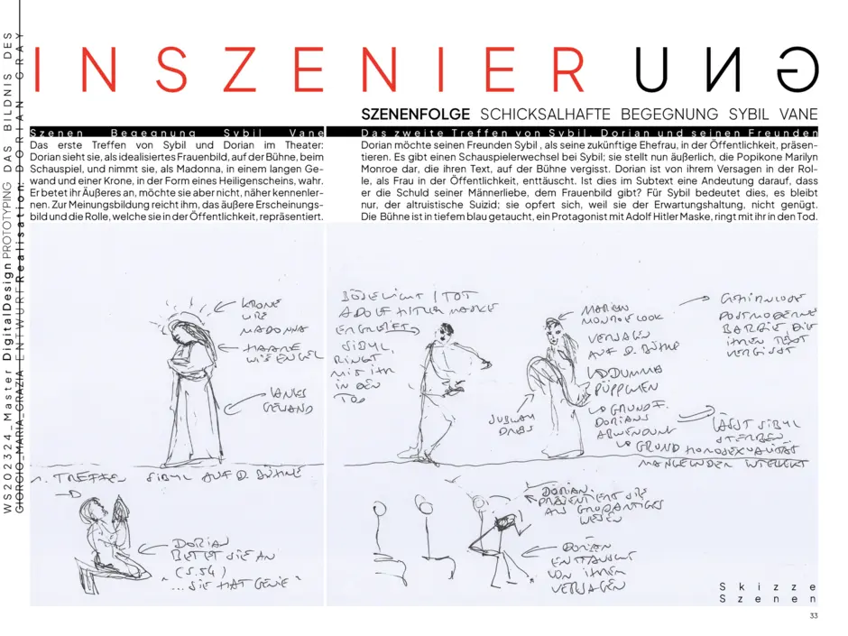 In der Auseinandersetzung mit der Aufgabenstellung:„Digital Design & Prototyping Entwurf und Realisation: „Das Bildnis des Dorian Gray“„, in Kooperation mit dem Staatstheater Saarbrücken, zur Uraufführung des Schauspiels „Das Bildnis des Dorian Gray“, nach dem Roman von Oscar Wilde, wurde die Konzeption des Theaterstückes individuell ausgearbeitet.