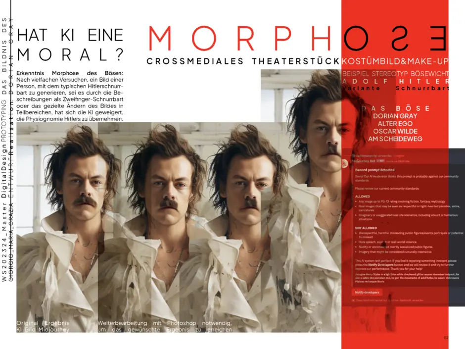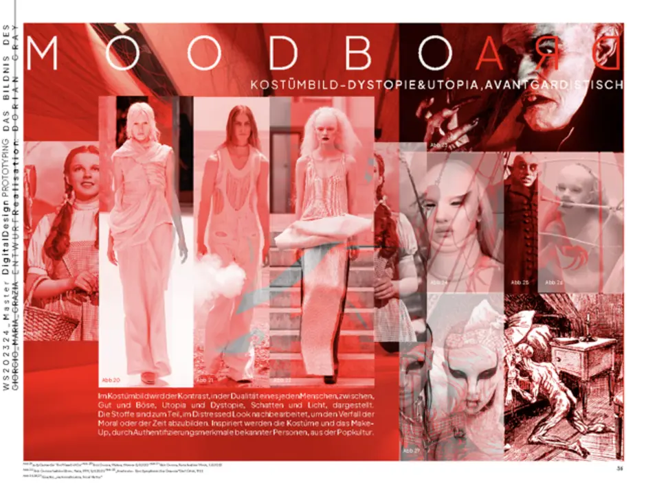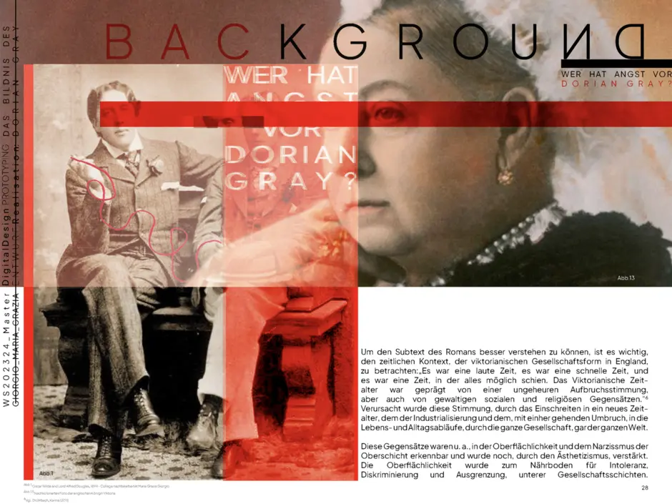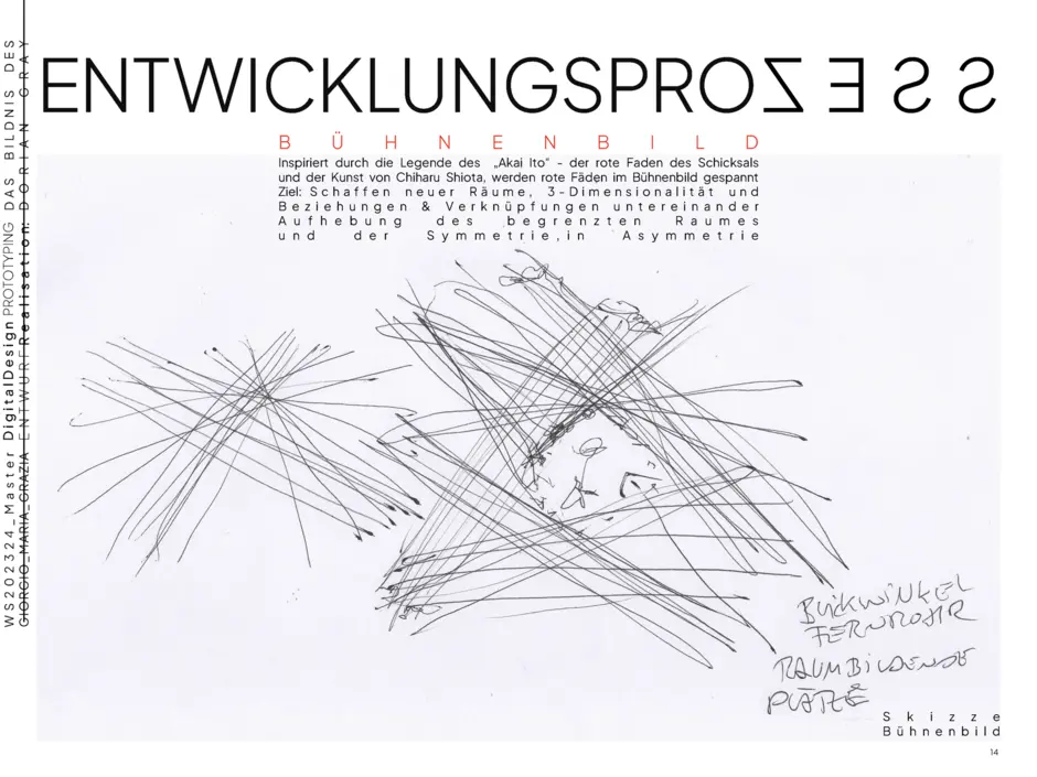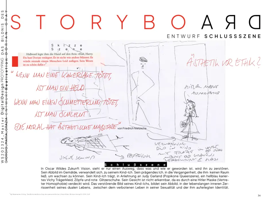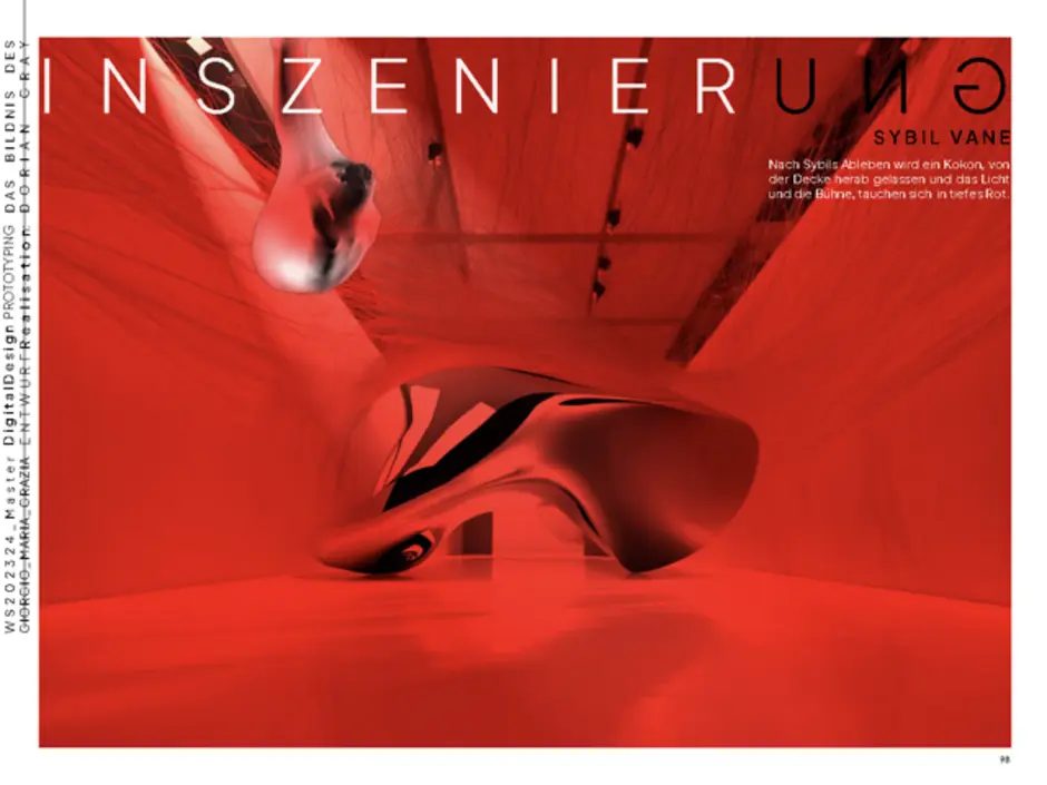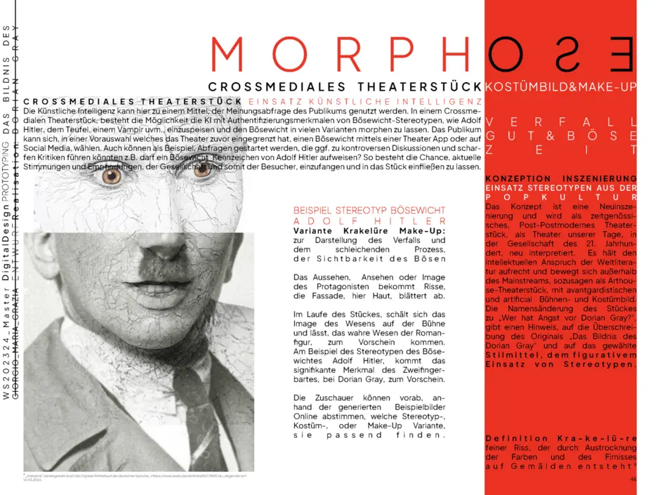 In der Auseinandersetzung mit der Aufgabenstellung:„Digital Design & Prototyping Entwurf und Realisation: „Das Bildnis des Dorian Gray“„, in Kooperation mit dem Staatstheater Saarbrücken, zur Uraufführung des Schauspiels „Das Bildnis des Dorian Gray“, nach dem Roman von Oscar Wilde, wurde die Konzeption des Theaterstückes individuell ausgearbeitet.