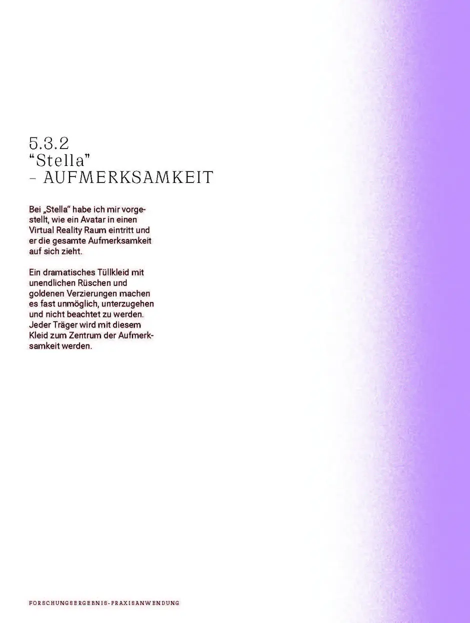 Das zweite Ziel ist, Mode in der digitalen Welt zu entwerfen, die als „Körperersatzstück“ den Benutzern hilft, ihre Identität zu kommunizieren und somit auch ihre Emotionen zu zeigen. Da Benutzer noch von Avataren begrenzt sind, die keine Emotionen zeigen können, sollte die digitale Mode in der Lage sein, die Werte der neuen digitalen Gemeinschaften widerzuspiegeln. Das Ziel ist es, nach Mitteln zu suchen, die helfen könnten, die Emotionen in der digitalen Welt mit digitaler Mode auszudrücken und so den Benutzern die Möglichkeit zu geben, echte Verbindungen aufzubauen.