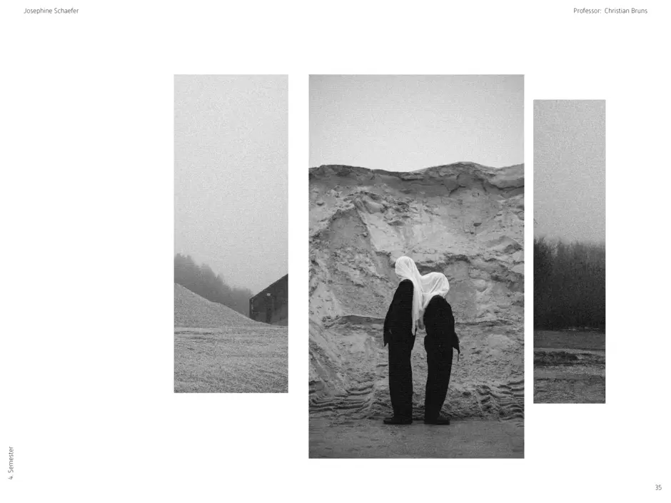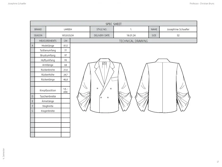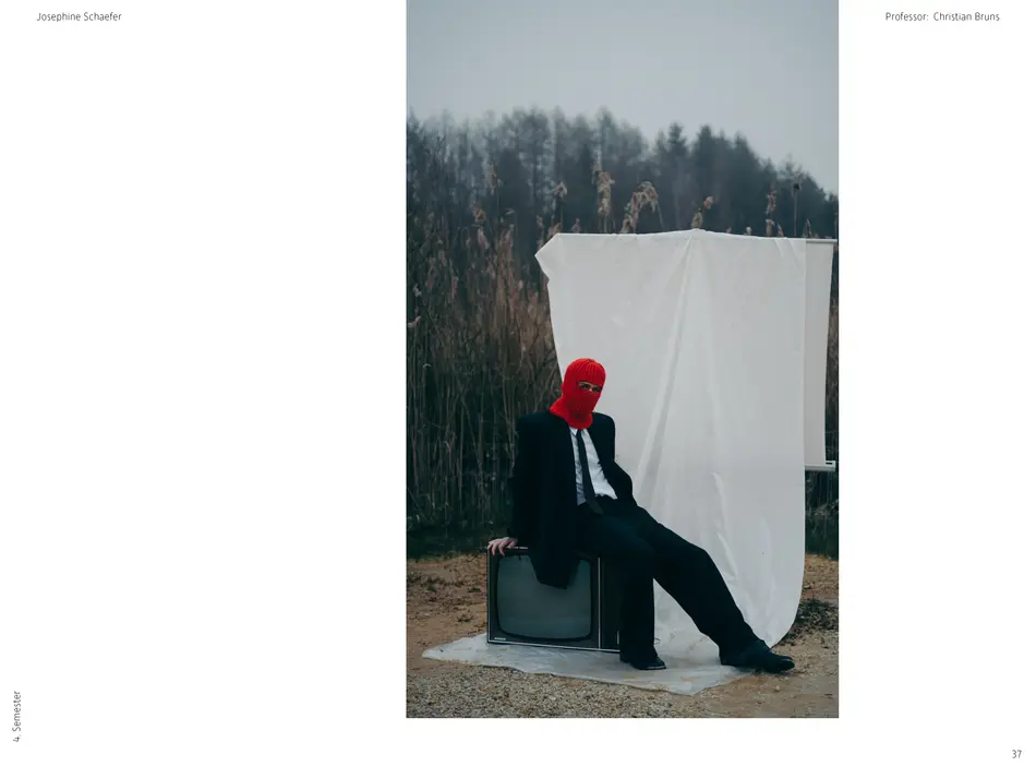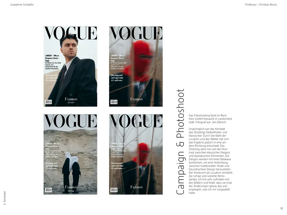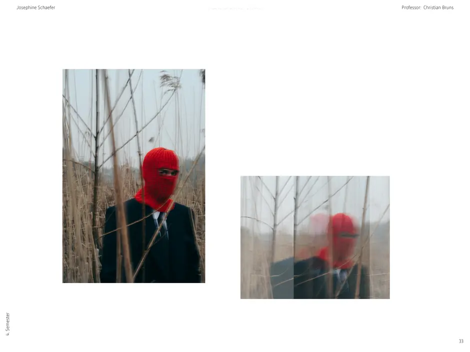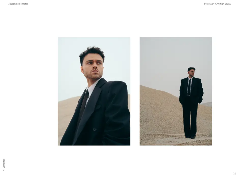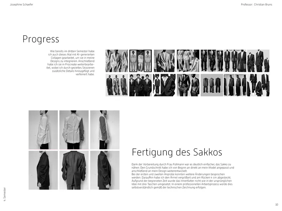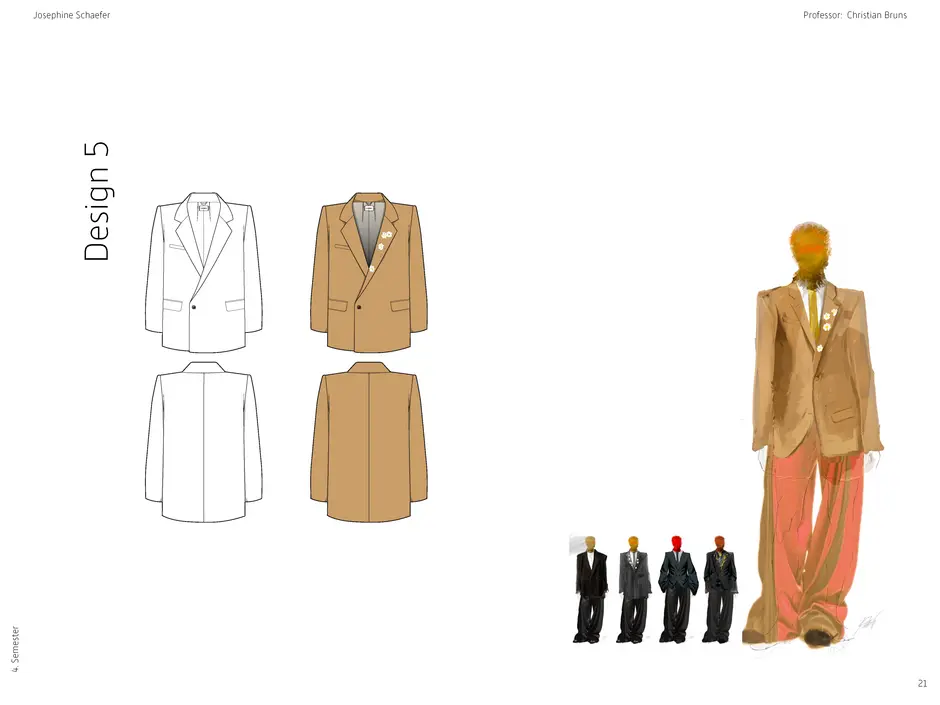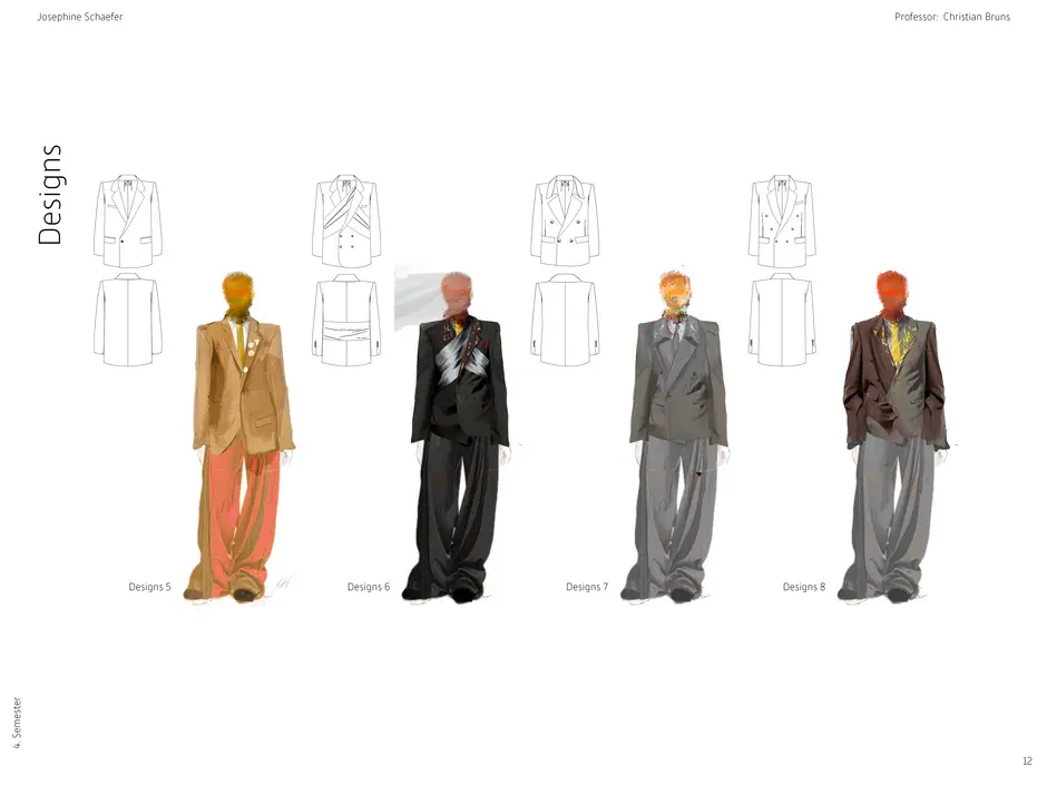 Ein Konzept für das 4. Semester 2024/25 basierent auf der Kombination zwischen klassischen Elementen, inspiriert von Yves Saint Laurents Anzügen und futuristischen Akzenten. Der Fokus liegt dabei auf einem Kontrast zwischen Retro-Ästhetik und modernen, fast dystopischen Details. Dies wird durch den Einsatz von Balaclavas und die Wahl der Stoffe sowie der Schnittführung zum Ausdruck gebracht. Yves Saint Laurent hat mit seiner Mode die Akzeptanz der Androgynität der Frau und somit auch die Frauenbefrei-ungsbewegung unterstützt. Sehr berühmt war hier der Le Smoking von 1966. (1) Aus diesem Grund soll die Kollektion sowohl für Männer als auch für Frauen tragbar sein.