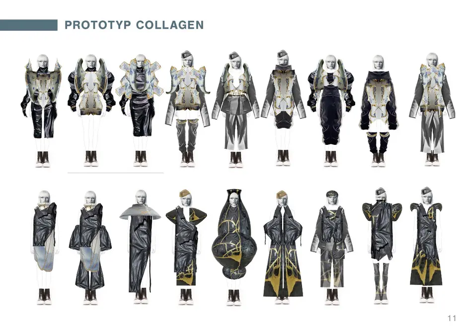 Mein innovativer Ausgangspunkt beschäftigt sich mit der Herstellung von Bio Plastik als nachhaltiges Ersatzprodukt zu Leder. Dabei werde ich mit verschiedenen Rohstoffen wie Algen, Maisstärke und Kaffee experimentieren. Die in der Street Goth Kultur typischen Lederkomponenten werde ich durch meine Lederersatzprodukte in das Thema integrieren.
