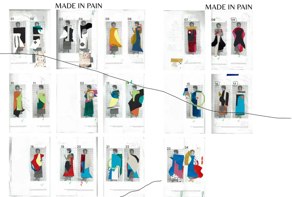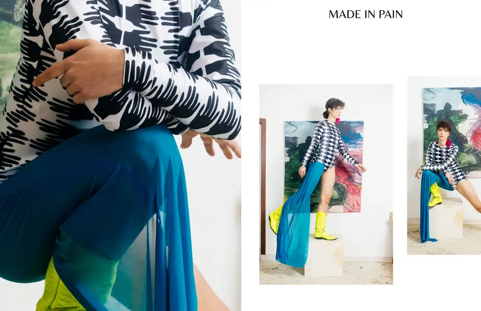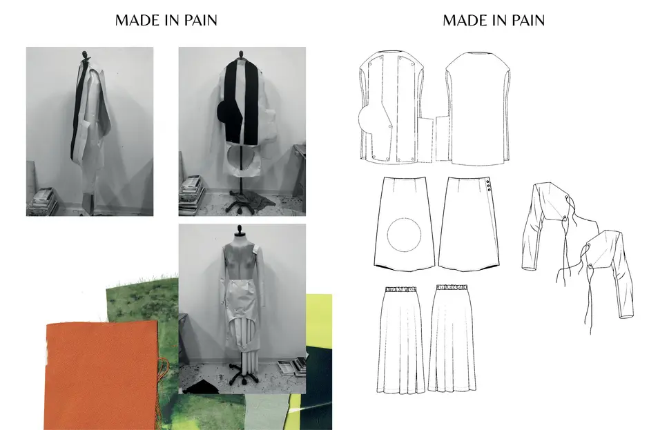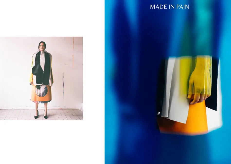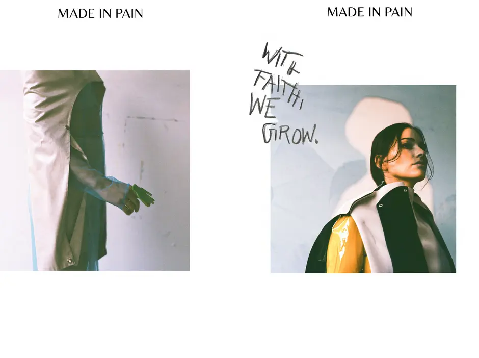 MADE IN PAIN behandelt den schmerzlichen Prozess, wie unser Körper Traumata verarbeitet und uns transformierend zu neuer Energie bringen kann. In der Kollektion geht es darum Emotionen zu visualisieren und damit den Prozess einer subjektiven Traumaheilung deutlich zu machen.Die Prozessarbeit nach einem traumatischen Erlebnis ist entscheidend, denn je nachdem wie sie abläuft, verarbeiten wir das Erlebte auf unterschiedliche Weise.