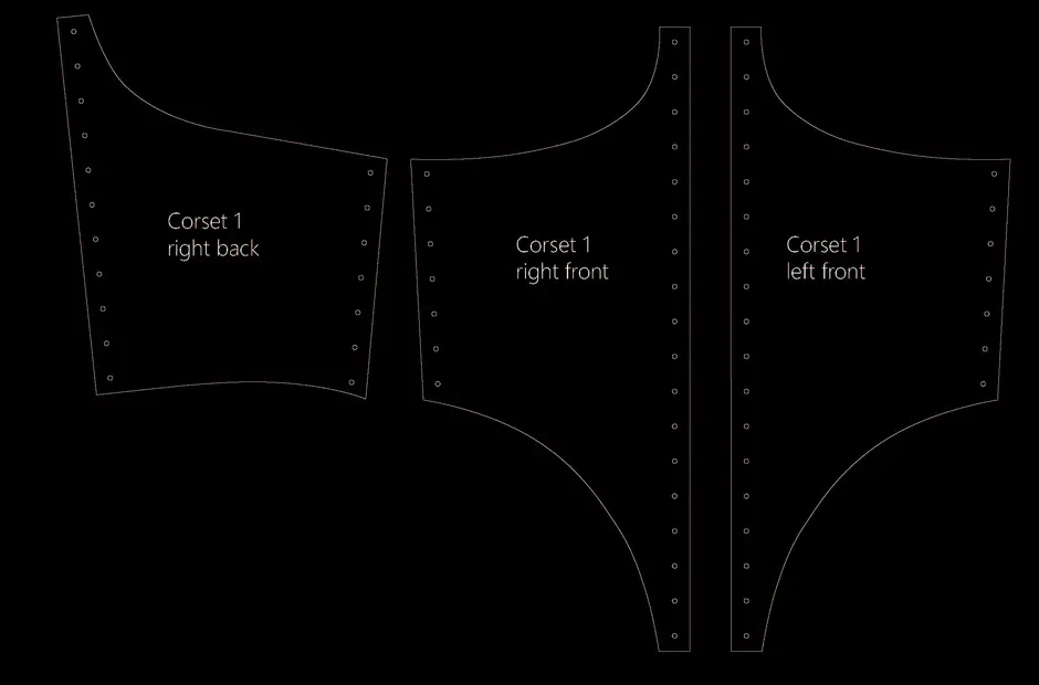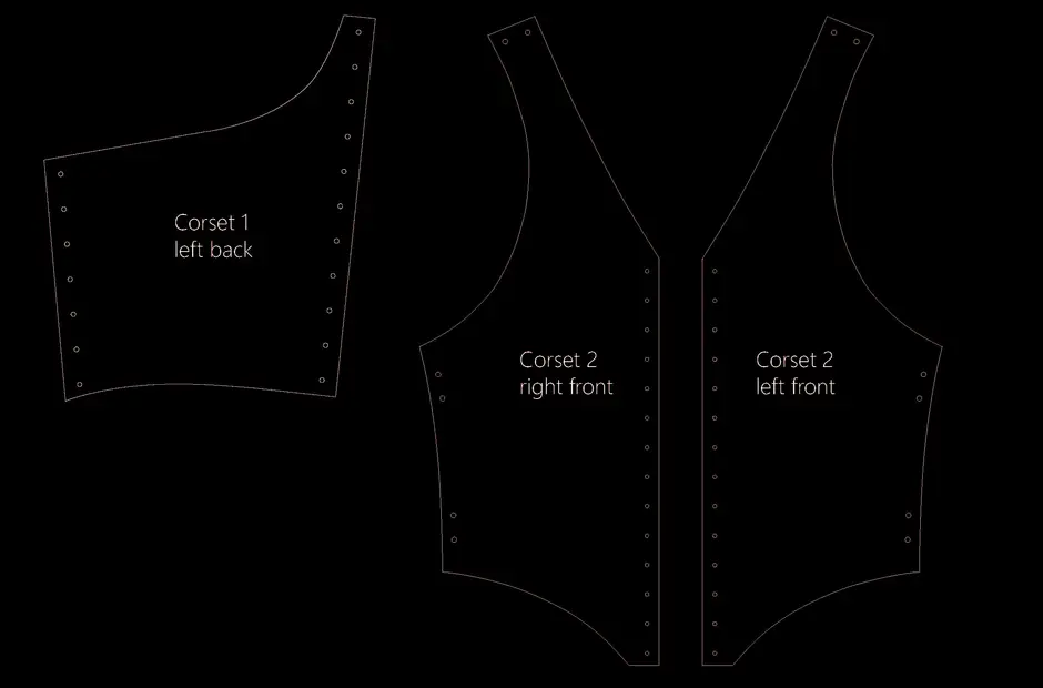 With these prototypes I offer a preview of the entire collection. The pieces depict the simplicity of the patterns and the delicacy the clothes were made with. Focus lies on the play between wide and form fitting shapes. Therefore, I limited myself to manufacturing two pants and two corsets. The play between opacity and transparency can be seen in more designs but is made pretty obvious looking at the outfits I made. The corsets have armor-esque optics and with their strong material can be seen as such, thereby having a masculine flair. The pants on the other hand have wide legs and lengthen the legs which would stereotypically be a womenswear element.