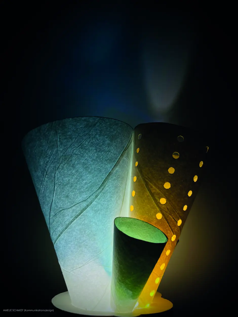 Angeboten wurde ein Kreativ-Workshop, in dem es darum ging, Papier und papierartige Materialien in der Form zu manipulieren, dass es am Ende als LICHTKÖRPER dienen kann.