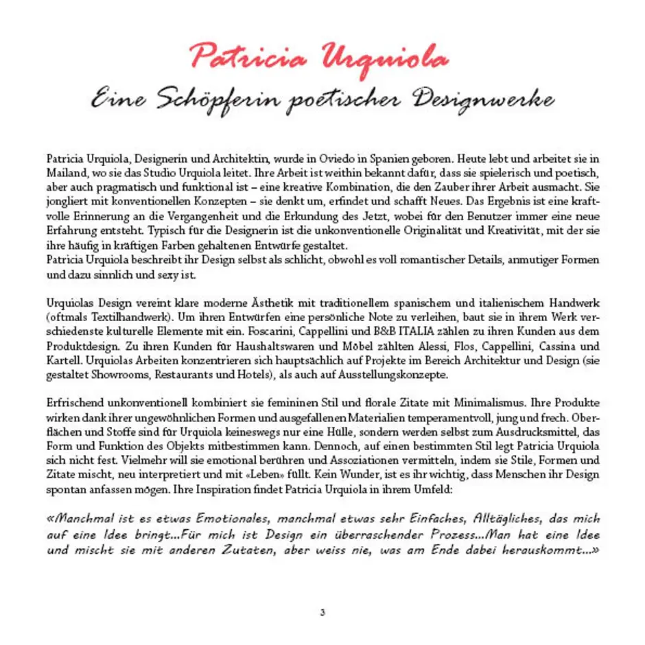 Das Ziel des Projektes war es Prints für Patricia Urquiola (spanische Architektin und Designerin) zu entwickeln.