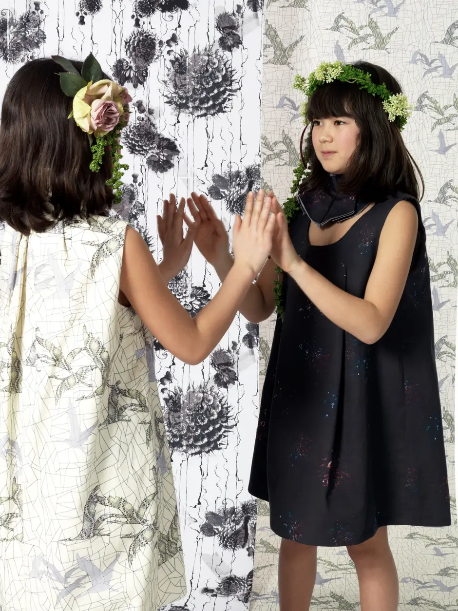 Präsentiert wird das Ergebnis einer Vielfalt von individuellen, expressiven Interpretationen auf schwingenden Kleidervolumen in doppelter Ausführung.