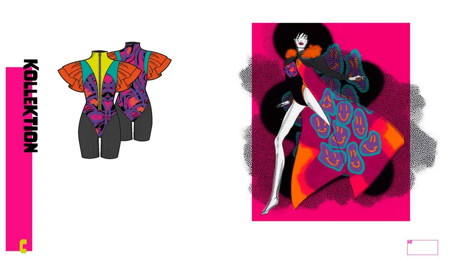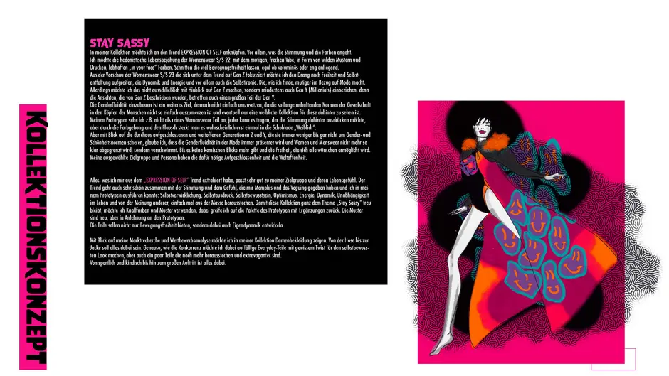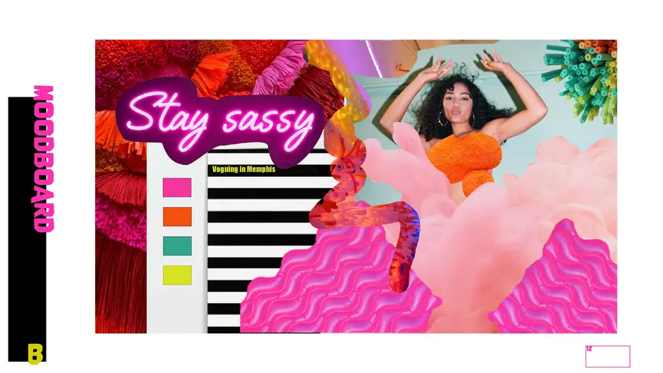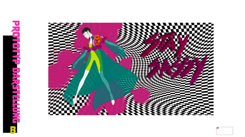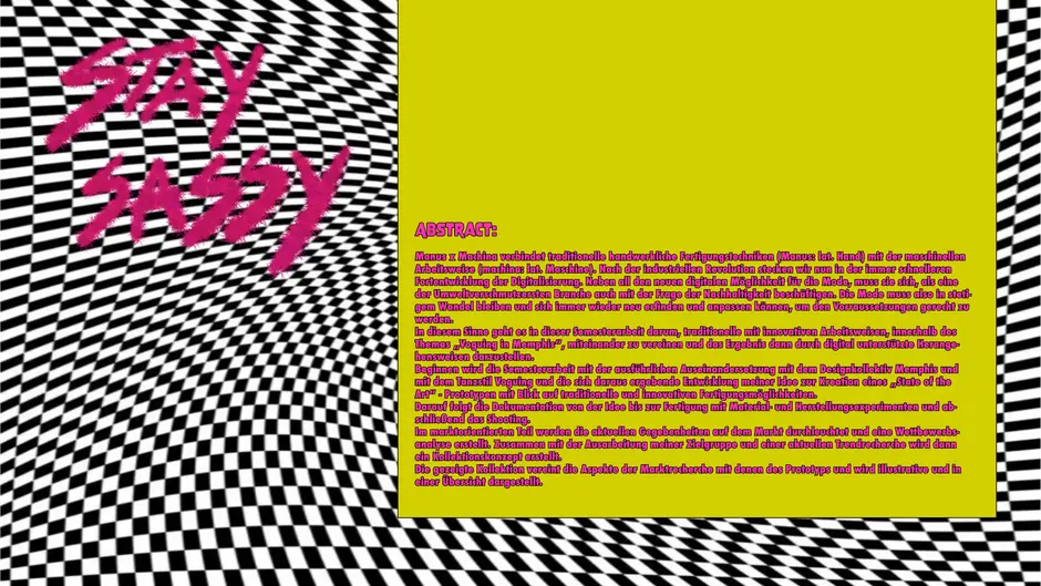 Dieses Gefühl verbindet für mich auch die Memphis Group mit dem Voguing. Voguing bietet einen Raum für die LGBTQ+ Community, wo diese sie selbst sein können. Es steht für sie eine befreiende Form des Selbstausdrucks. V.a. in seiner Entstehungszeit wurden die Rechte der Menschen, die sich nicht den gesellschaftlichen Normen von Sexualität und Geschlecht zugehörig gefühlt haben und noch dazu nicht weiß waren, bedroht. Durch das Voguing konnten sie die unterdrückenden Ideale von weißer Weiblichkeit, Sexualität, Schönheit und Klasse parodieren. Im Grunde geht es darum, dass sie einen „Save Space“ haben um ihr wahres Selbst ausdrücken und seine ganz eigene Geschichte zu erzählen zu können. Völlig unabhängig von dem was in der Gesellschaft als „normal“ oder als „so hat es zu sein“ angesehen wird. Die Botschaft ist: Sei du selbst und lass dir von niemandem sagen, wie du zu leben oder zu lieben hast! Dieses Gefühl und diese Stimmung habe ich im gegebenen Thema „Voguing in Memphis“ zu meinem persönlichen rebellisch angehauchten Thema „STAY SASSY!“ gewandelt.