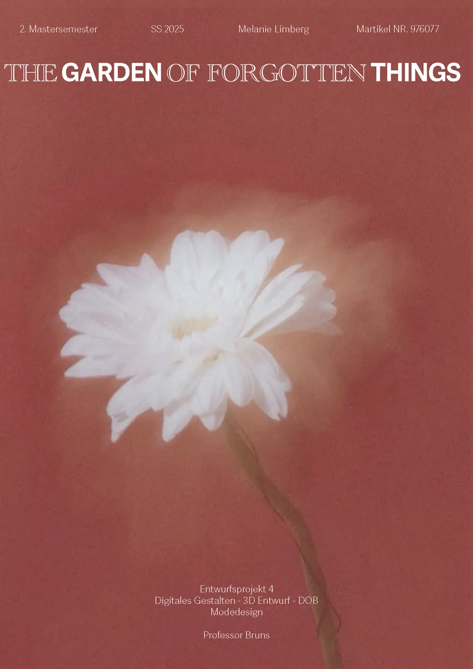 The Garden of Forgotten Things“ ist eine poetische Auseinandersetzung mit dem Verlorenen, dem Verblassten und dem, was in Erinnerung weiterwächst. Die Kollektion verwebt florale Elemente, kindliche Assoziationen und theatralische Überzeichnungen zu einer emotional aufgeladenen Modewelt – irgendwo zwischen Traum und Vergangenheit.