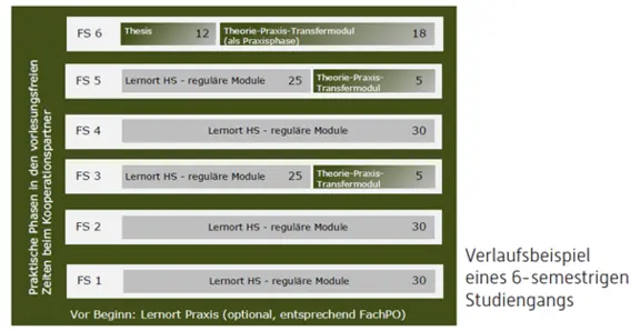 Während des danach beginnenden Studiums (im Jahr nach Ausbildungsbeginn zum Wintersemester) an der Hochschule Trier folgen weitere betriebliche und überbetriebliche Ausbildungsphasen in den vorlesungsfreien Zeiten. Die praktische Ausbildungszeit umfasst, einschließlich anteiliger tariflicher Urlaubsphasen, insgesamt 22 Monate. Das Studium verläuft in Vollzeit, analog dem nicht-dualen Studiengang.