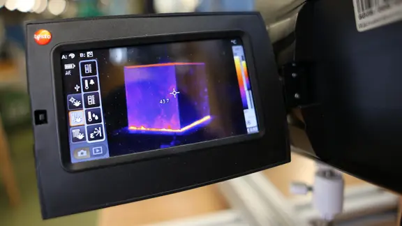 Anschließend dürfen die Teilnehmer*innen die Kamera selbst ausprobieren und die Wärmestrahlungseigenschaften verschiedener Materialien experimentell untersuchen.