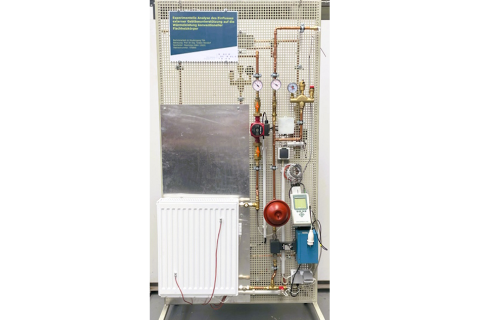 Im Labor lernen die Studierenden die Funktionsweise von Plattenheizkörpern und die Auswirkung von erzwungener Konvektion zu verstehen. Sie lernen dabei außerdem, wie man Heizflächen berechnet und dimensioniert.