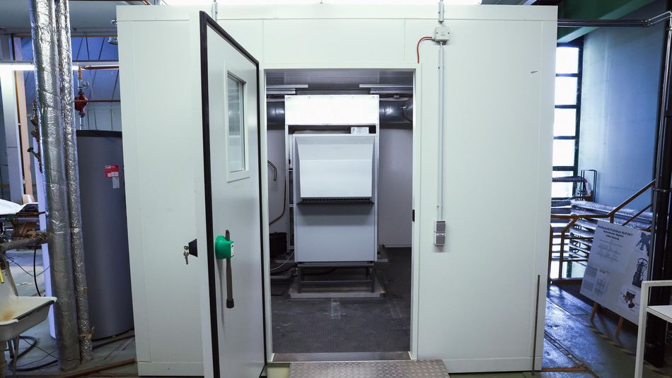 In der Praxis dient der Versuchsstand zur Leistungsprüfung von Luft/Wasser-Wärmepumpen nach dem EHPA Prüfreglement. Die Wärmepumpe befindet sich in einer Kühlkammer. In dieser lässt sich ein Betriebszustand frei wählen und konstant halten. Dafür muss diese beheizt und manchmal befeuchtet werden.