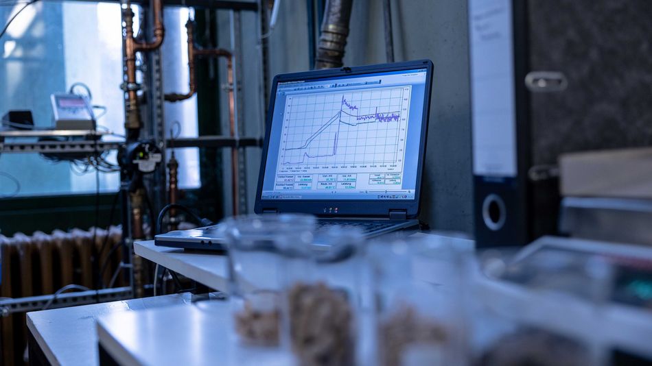 Im Labor lernen die Studierenden die Funktionsweise eines Pelletkessels kennen. Sie messen den Brennstoffverbrauch, die Wärmeleistung und die Abgaswerte und ermitteln daraus den Wirkungsgrad des Kessels. Das Brennverhalten verschiedener Pelletmischungen wird analysiert und betrachtet, welche Faktoren welchen Einfluss auf die Verbrennung haben (z. B. Sauerstoffzufuhr). Die Studierenden werten den Versuch mit einer Verbrennungsrechnung aus.