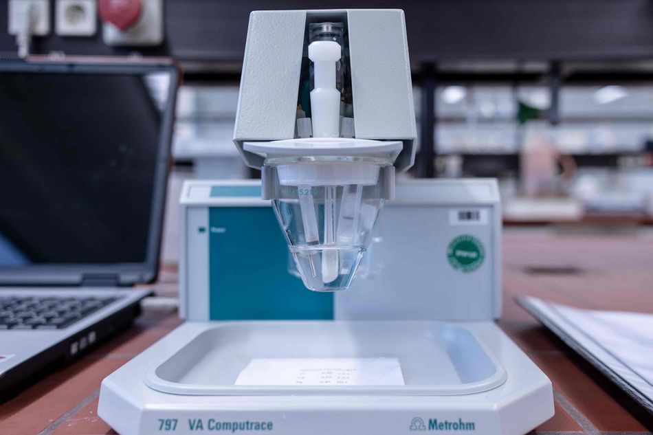 Im Labor lernen die Studierenden das Grundprinzip der Voltammetrie bzw. Polarographie zu verstehen und anzuwenden. Dazu führen sie Analysen verschiedener Trinkwasserproben auf die Schwermetalle Blei, Cadmium, Kupfer und Zink durch.