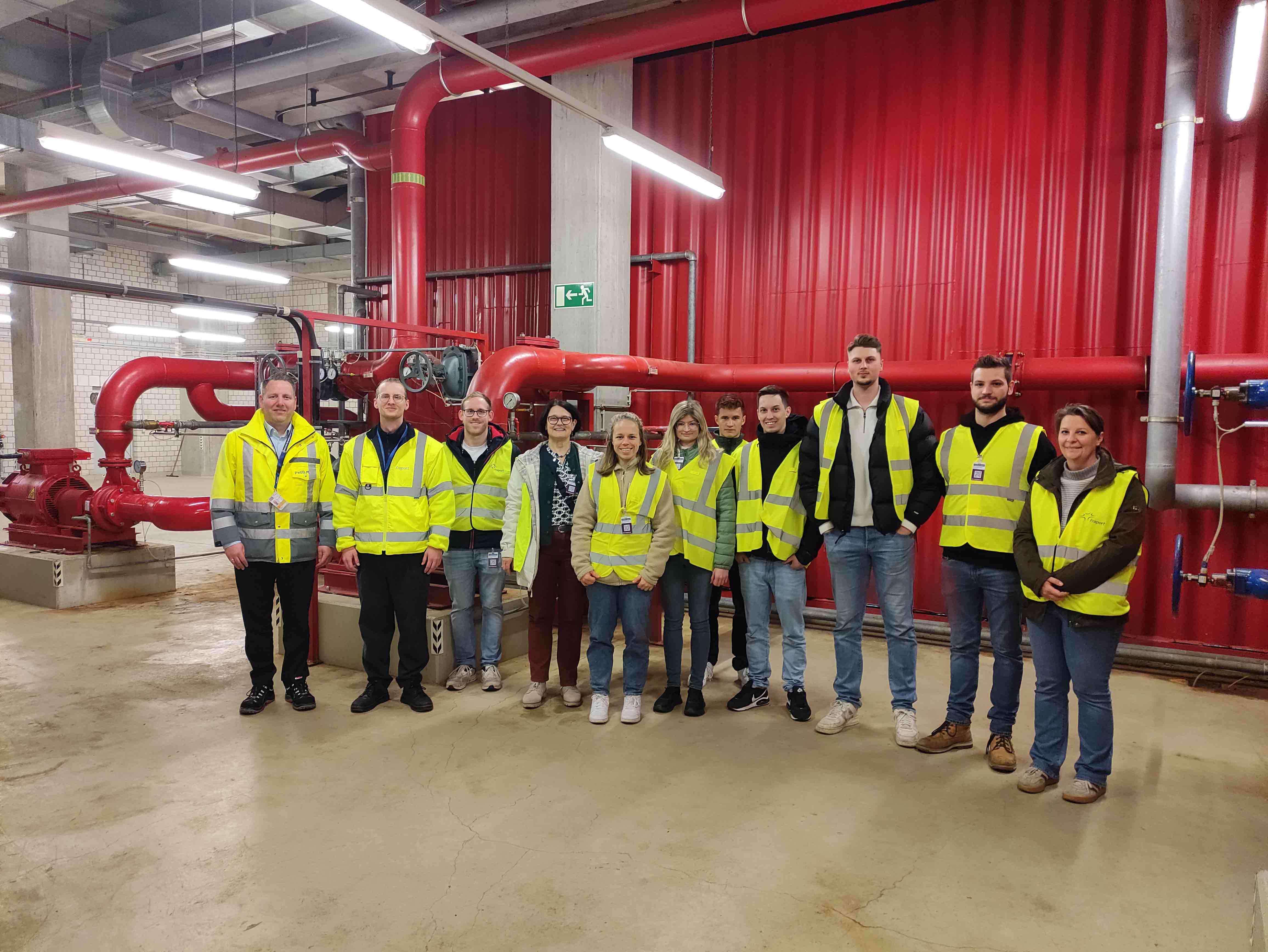 Auch zentrale Brandschutzsysteme wie Brandmeldezentrale, Sprinklertechnik und Feuerwehrinformationszentralen standen im Fokus. Insgesamt bot der Tag eine ideale Ergänzung zum theoretischen Unterricht und vertiefte das Verständnis für anspruchsvolle gebäudetechnische Systeme.