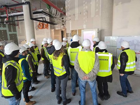 Die Studierenden erhielten vor Ort einen Eindruck von den Dimensionen und Herausforderungen eines so großen Bauprojektes. Mit einer Bruttogeschossfläche von mehr als 190.000 m², rund 4.680 Räumen und 120 Behandlungszimmern entsteht hier ein umfangreicher Gebäudekomplex, der später mehrere tausend Mitarbeitende beschäftigen wird.