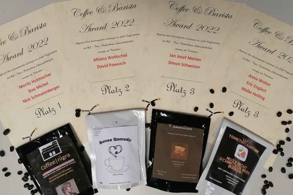 Im Laborversuch „Kaffeeröstung“ der Drittsemester des Studiums Lebensmitteltechnologie war technologisches und sensorisches Geschick gefragt, einen „Roast“ auf dem Trommelröster zu fahren, der insbondere den Geschmack der Erstsemester-Studierenden der Fachrichtung trifft, die traditionell die Jury stellen. In der verdeckten sensorischen Verkostung wurden die Kompositionen nach einem Punktesystem bewertet. Ebenfalls wurden weitere Punkte für die kreative Gestaltung der Etiketten vergeben. In diesem Jahr war das Bewerberfeld so eng, dass zweimal der 3. Platz vergeben wurde.