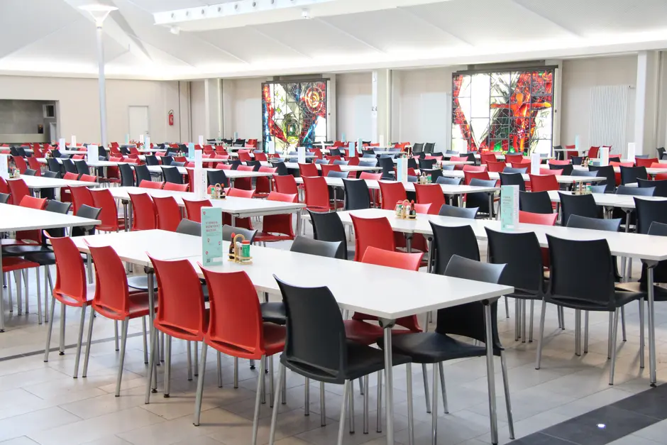Die barrierefrei erreichbare Mensa belegt bei deutschlandweiten Umfragen immer wieder Spitzenplätze. Während des Semesters stehen täglich mindestens sechs glutamatfreie und sehr unterschiedliche Gerichte zur Auswahl.